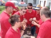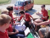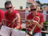 Gleich zu Beginn wurden wir von unserer Musikerin Claudia-Elisabeth Schwarz zu einem kleinen Frühstück geladen, wofür wir uns recht herzlich bedanken möchten. Anschließend spielte ein kleiner Teil der Kapelle auf dem Anhänger durch die Ortschaft fahrend Märsche und Polkas. Die restlichen MusikerInnen und Marketenderinnen gingen von Haus zu Haus und ersuchten die Bevölkerung um eine kleine Spende. Gleichzeitig wurde zu den am Sonntag den 30. Juli 2013 im Hof der Familie Paul stattfindenden Musikerkirtag eingeladen. Da an diesem Tage auch auf der Terrasse der Familie Netzl der 80. Geburtstag von Fr Netzl gefeiert wurde, spielten die MusikerInnen der Jubilarin gleich ein kleines Ständchen und wünscht dieser auch nochmals alles Gute zum runden Geburtstag. Nach der Tour durch Göttlesbrunn stand mit einem weiteren Ständchen beim Heurigen-Lokal Edelmann gleich die nächste Spielerei auf dem Programm. Die Jugendblasmusik möchte sich auf diesem Weg nochmals bei der Bevölkerung für die Spenden bedanken. Weiters bedanken wir uns auch bei unserem "Chauffeur" Franz Taferner, welcher den Traktor mit Anhänger zur Verfügung stellte. |