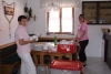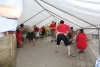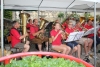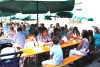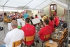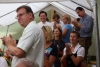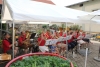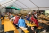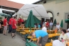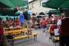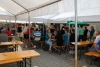 Alle drei durften sich über einen Weinkorb freuen, wobei der Erst- und Zweitplazierte zusätzlich einen Gutschein erhielt. Am Abend ließen die zahlreichen Helfer und noch anwesenden Gäste bei Gesang und einigen Gläsern Wein bzw „Nuss-Schnaps“ den Musikerkirtag gemütlich ausklingen. Da man bereits den 5. Musikerkirtag veranstaltete und alle Wetterkapriolen durchmachte, war man auch heuer wieder bestens vorbereitet und für jede Wetterlage gewappnet. Heuer entschloss man sich aufgrund der vorhergesagten 30 Grad den Innenhof der Familie Paul mit Sonnenschirmen abzudecken. Da jedoch Gewitter vorhergesagt waren, wurden in der Halle auch Zelte bereitgehalten. Wie es der Wettergott so wollte, öffnete dieser am Nachmittag zum ersten Mal seine Regenschleusen. Unmittelbar nach den ersten Regentropfen entschloss man sich die Schirme abzubauen und die Zelter aufzubauen. Unter der Anweisung von Kapellmeister Bernhard Fischer über das Mikrofon wurden zeitgleich durch die MusikerInnen und anwesenden Gästen die Schirme abgebaut und die Zelte aufgestellt. Hier noch einmal ein großes Lob an alle Mitwirkenden beim Zeltaufbau. Auch ein später niedergehendes Gewitter mit Starkregen konnte der tollen Stimmung nicht trotzen und so wurde immer fleißig weitergespielt und mitgeklatscht. Gegen 18 Uhr kam auch noch ein Autobus mit ca 50 MusikerInnen des Musikvereines Reinsberg. Diese waren von einem Slowakei-Ausflug auf dem Heimweg und kehrten noch beim Musikerkirtag zu Speis und Trank ein. Natürlich wurde die bereits hervorragende Stimmung nochmals deutlich gehoben, und fleißig getanzt bzw auf den Bänken und Tischen mitgeklatscht. Man konnte auch heuer wieder sehen, egal wie die Wetterlage ist, es herrscht von Jahr zu Jahr eine hervorragende Stimmung beim Musikerkirtag, wo den Gästen von 11 Uhr bis in den Abend hinein Blasmusik vom Feinsten geboten wird. Die Jugendblasmusik möchte sich nochmals recht herzlich bei allen HelfernInnen, bei den Winzern von Göttlesbrunn für die großzügigen Weinspenden, bei den Haubenlokalen Vinarium Bittermann und Gasthaus Jungwirt für die Gutscheine, bei der Familie Paul, wo wir bereits das 5. Mal Gast sein durften, für die zur Verfügungstellung ihres Innenhofes bedanken. Sollte jemand vergessen worden sein, so gilt auch für diesen ein großes Dankeschön.