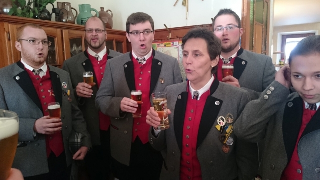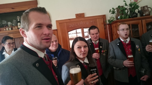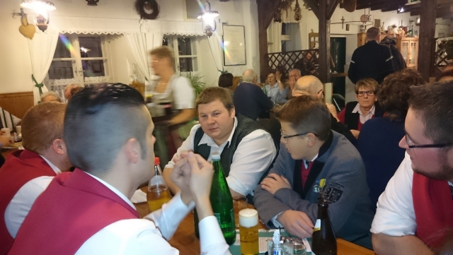 Einige MusikerInnen besuchten in den letzten Jahren schon öfters dieses Konzert, da unser ehemaliger Trompeter Markus Achtsnit bei seiner dortigen Heimatkapelle immer mitspielte. Wie bereits bekannt gegeben wurde, übersiedelte unser „Maxl“ beruflich wieder in das Waldviertel (Nähe seiner Heimatgemeinde) und beendete daher nach 10-jähriger aktiver Spielerei bei der Jugendblasmusik Göttlesbrunn-Arbesthal, aufgrund der großen Distanz seine Karriere in Göttlesbrunn. Auch heuer fragte „Maxl“ wieder einige MusikerInnen ob sie das Konzert in Langau besuchen kommen, wobei jedoch alle absagten, da im Hintergrund bereits ein Überraschungsbesuch geplant wurde. Sehr erfreut zeigte sich „Maxl“ dann, als plötzlich und unerwartet eine größere Gruppe von MusikerInnen, der JBM Göttlesbrunn-Arbesthal unter den ca 600 Besuchern saßen. Als Höhepunkt wurde Markus Achtsnit auch noch öffentlich von Kapellmeister und Obmann der BAG Bruck/Leitha Bernhard Fischer geehrt und ein Verdienstzeichen des NÖ-Blasmusikverbandes überreicht. Bevor es wieder in die Heimat ging, wurde noch die Ehrung und der Abschied gefeiert. Die Mitglieder der JBM wünschen Markus Achtsnit auf diesem Wege nochmals alles Gute für die Zukunft und hoffen auf ein Wiedersehen beim einen oder anderen Auftritt.