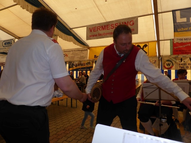 Am Samstag um 18.30 leiteten die Musiker und Musikerinnen der Jugendblasmusik den zweiten Tag des Festes musikalisch ein. Während des 2-stündigen Dämmerschoppens fanden sich immer mehr Gäste im Festzelt ein, sodass bei den Schlussstücken "Dem Land Tirol die Treue" und "Böhmischer Traum" doch noch ein gut gefülltes Zelt fleißig mitklatschte. Ab 20.30 sorgte die Band "Fortissimo" mit flotter Tanzmusik bis in die frühen Morgenstunden für die musikalische Unterhaltung. |