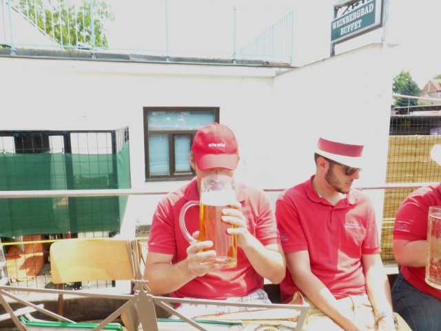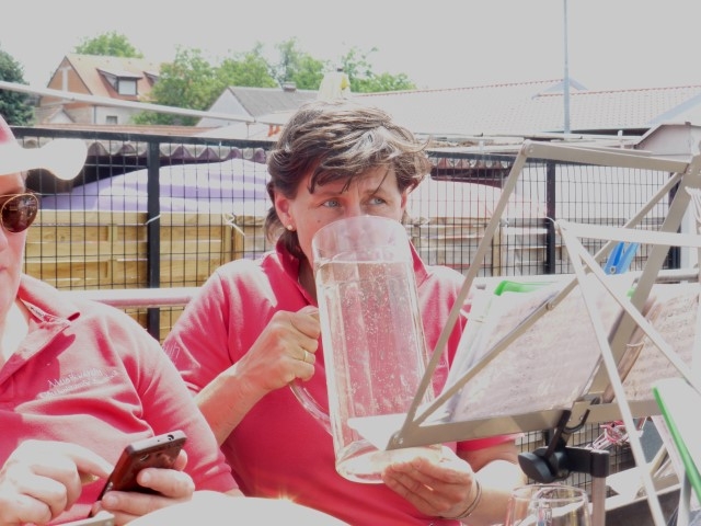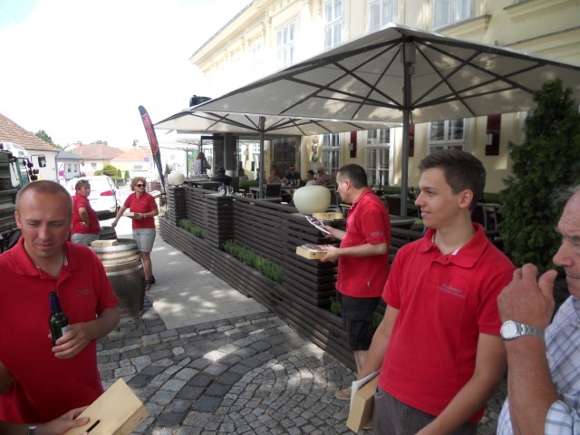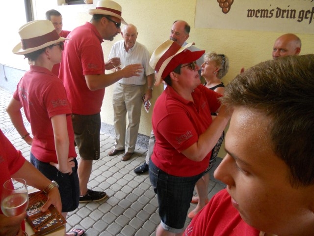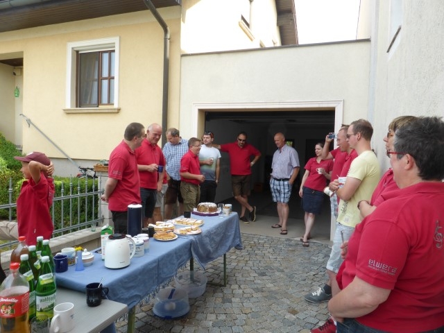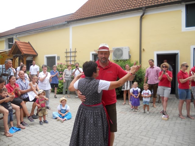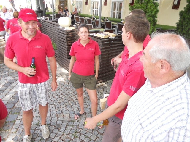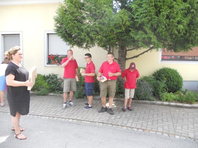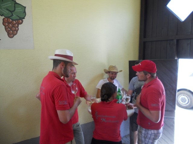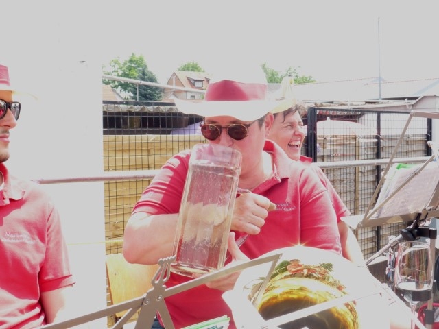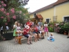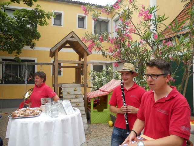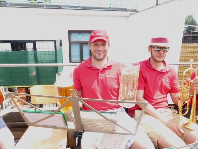 Um ca 9 Uhr machten wir uns auf den Weg nach Arbesthal zu unserer Musikkollegin Claudia-Elisabeth Schwarz, um uns dort mit einem Frühstück für den Tag zu stärken. Danach ging es wieder nach Göttlesbrunn, wo in brütender Hitze von Haus zu Haus marschiert und zum Musikerkirtag bzw. Oktoberfest eingeladen wurde. Ein kleiner Teil der Musikanten wurde wieder mit dem Traktor durch die Ortschaft chauffiert und sorgte so für musikalische Begleitung. Hierbei möchten wir uns bei Franz Taferner recht herzlich bedanken, welcher uns auch heuer Traktor und Anhänger zur Verfügung stellte. Aufgrund der tropischen Temperaturen kam jede Einladung auf eine Erfrischung gerade recht. Sowohl dafür, als auch für die zahlreichen Spenden möchten wir uns nocheinmal recht herzlich bedanken. |