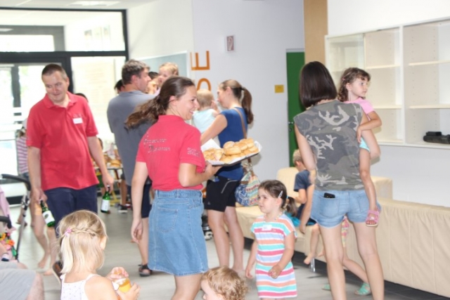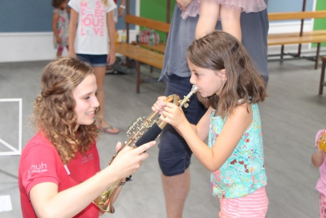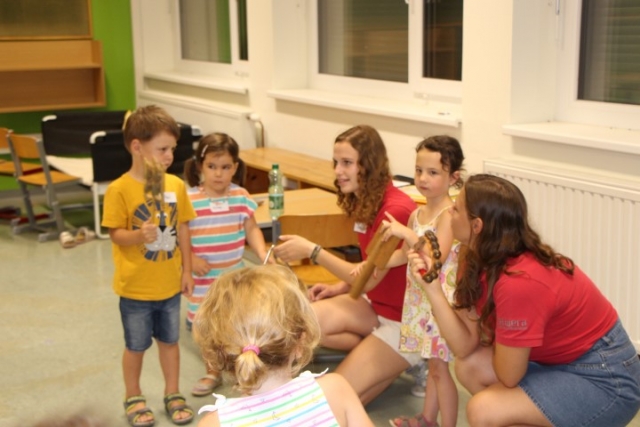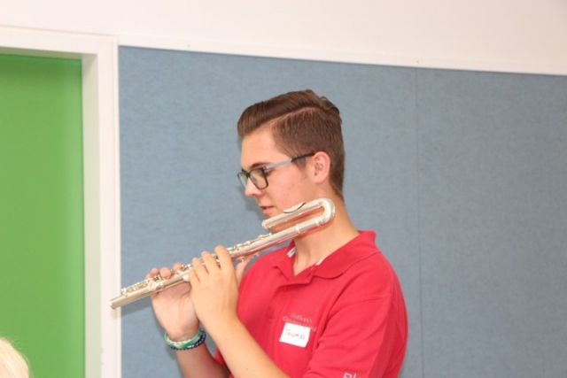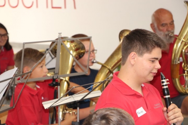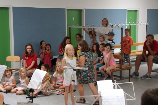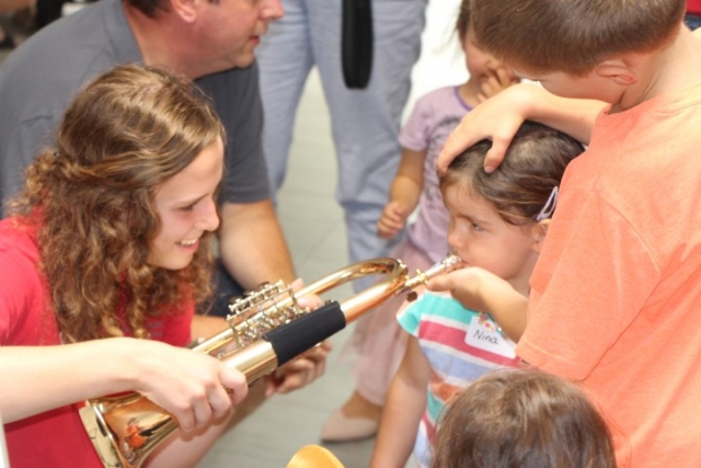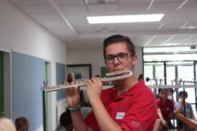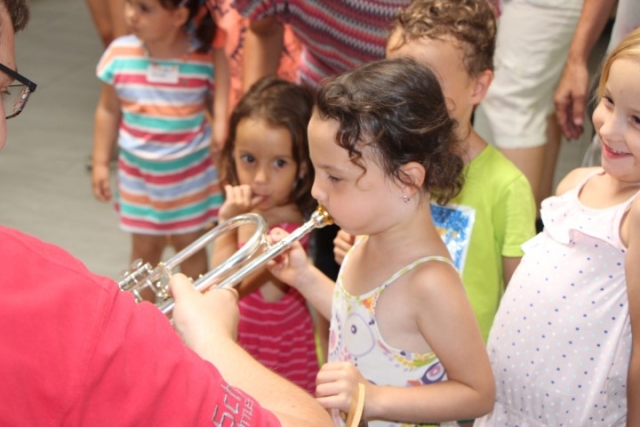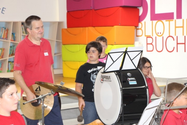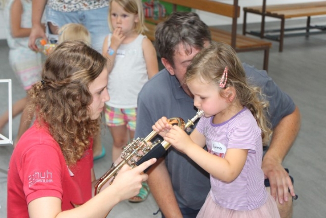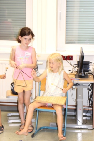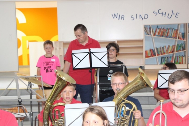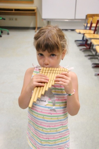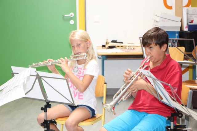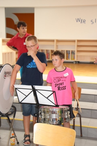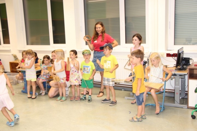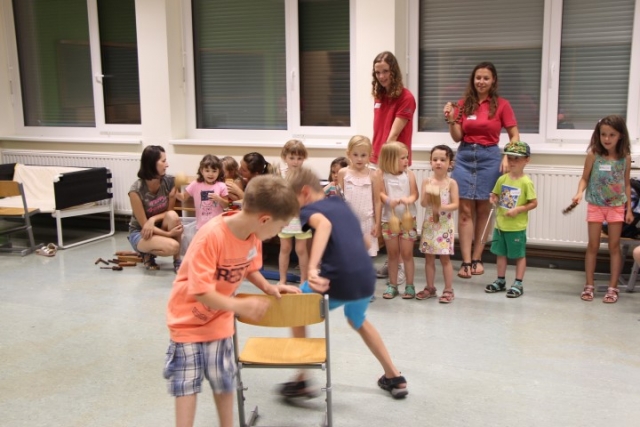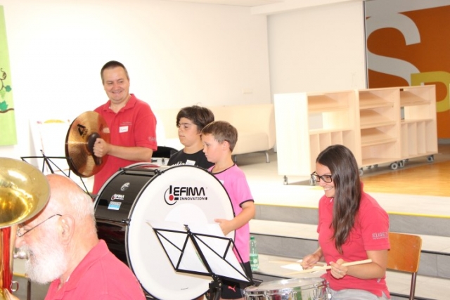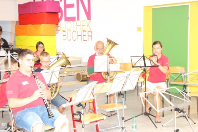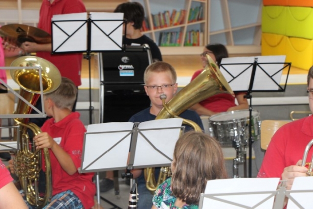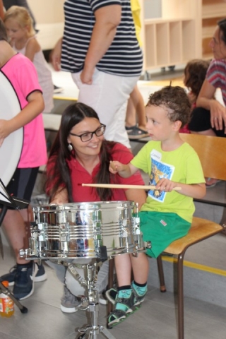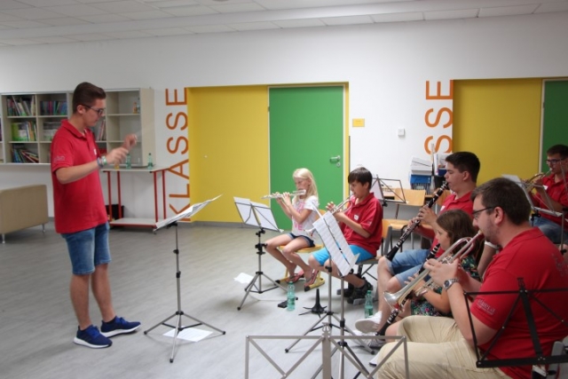 Am 20. Juli trafen sich einige MusikerInnen und zahlreiche Kinder in der Volksschule in Göttlesbrunn. Die Kinder wurden in zwei Gruppen aufgeteilt. Jene, die schon ein Instrument spielen konnten, bildeten mit uns "großen" Musikern ein kleines Orchester und studierten unter der Leitung von Thomas Krackhofer ein einfaches Stück ein, welches allen anderen am Ende vorgetragen wurde. Die restlichen Kinder vergnügten sich bei lustigen Laufspielen und stellten ihr musikalisches Talent bei der Station "Welches Instrument ist das?" unter Beweis. Dabei wurden den Kindern kurze Hörbeispiele von verschiedenen Instrumenten vorgespielt, welche zu erraten waren. Danach wurden von den MusikerInnen noch ein Marsch und eine Polka vorgetragen, wobei alle Kinder fleißig mitklatschten. Zum Abschluss durften die Kinder alle Instrumente ausprobieren und versuchen einen Ton zu spielen, was bei dem ein oder anderen Instrument gar nicht so einfach war. Es war für alle Beteiligten wieder ein sehr schöner und lustiger Nachmittag und wir freuen uns schon auf nächstes Jahr. |