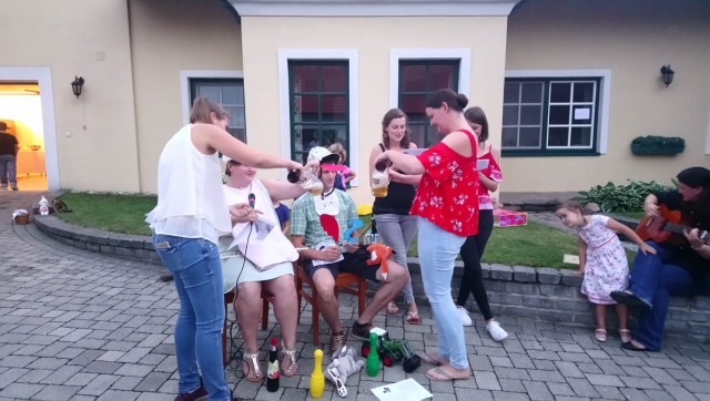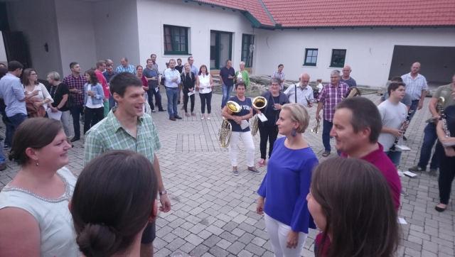 Ab 18.30 Uhr fanden sich die Gäste im Hause Glock in Göttlesbrunn ein, um den Geburtstags"kindern" zu gratulieren. Die Jugendblasmusik drückte wie immer mit ein paar Märschen und Polkas ihre Glückwünsche musikalisch aus. Von Obmann Thomas Flamm wurde außerdem ein kleines Geschenk überreicht. Auch die Familie der beiden hatte sich etwas einfallen lassen - von allen Anwesenden wurde ein für Lisa und Thomas umgedichtetes Lied vorgetragen und die beiden währenddessen mit passenden Accessoires ausgestattet. Danach ging es an den gemütlichen Teil bei Essen, Trinken und lustigem Beisammensein. Wir wünschen Lisa und Thomas noch einmal alles Gute zu ihrem runden Geburtstag. |