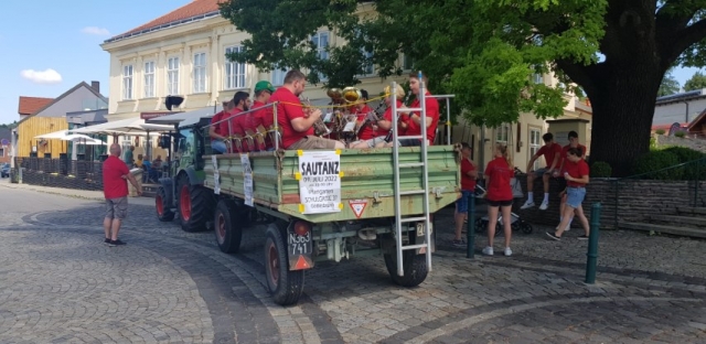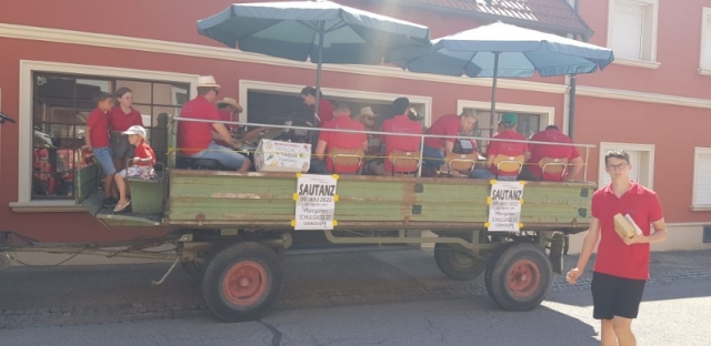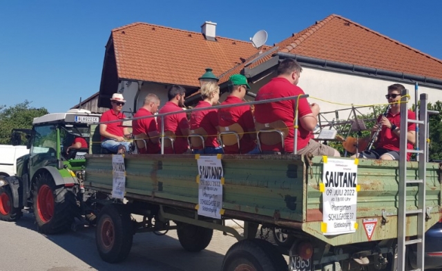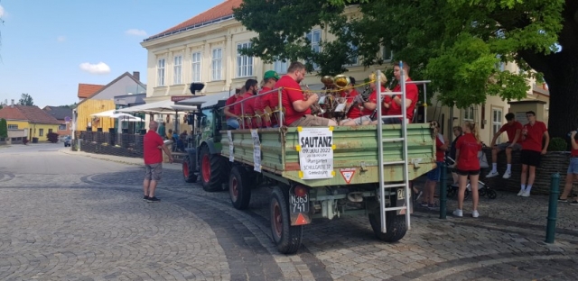 Wie jedes Jahr konnten wir uns zu Beginn mit einem Frühstück bei unserer Musikkollegin Claudia Schwarz in Arbesthal für den Tag stärken, ehe wir damit begannen, in Arbesthal die Einladungen für unseren Sautanz auszutragen. Damit ging es im Anschluss in Göttlesbrunn weiter. Natürlich war auch unser Traktor mit dem Anhänger voller Musikanten wieder dabei, welche musikalische Klänge auf die Straßen brachten. Die heißen Temperaturen machten uns zu schaffen, weshalb wir uns gerne mit den zahlreichen Getränkespenden abkühlten. Wir möchten dafür nochmals ein herzliches Dankeschön aussprechen. Ein weiterer Dank gilt Franz Taferner, der uns wieder Traktor und Anhänger zur Verfügung stellte. Zum Schluss natürlich noch ein großes Dankeschön an alle Unterstützer der Jugendblasmusik für die großzügigen Spenden. |