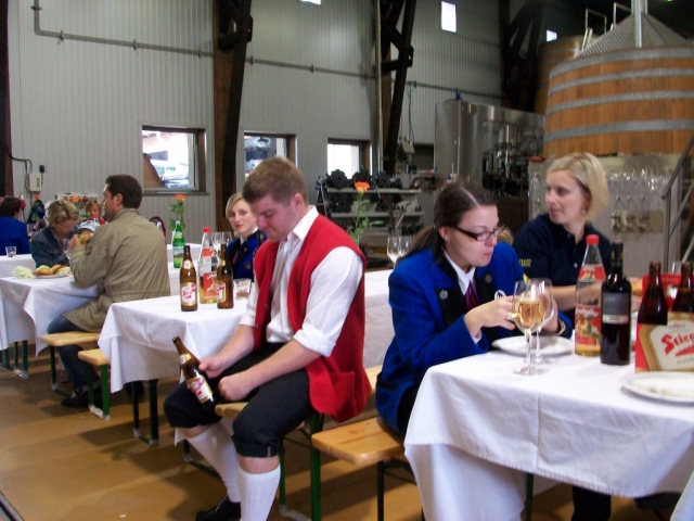 Dabei fuhren die Musikanten im klingenden Spiel auf einem Anhänger sitzend in den Hof des Weingutes ein, wo sie bereits von den Kindseltern und deren Gästen empfangen wurden. Nach den Glückwünschen durch Obmann Thomas Flamm wurden noch einige Märsche und Polka zum Besten gegeben. Wohlverdient wurde anschließend zu Speis und Trank und gemütlichem Beisammensein geladen. Bei der danach durchgeführten Weinverkostung wurden noch einige hochkarätige Weine bis ins Jahr 1999 zurück verkostet. Die Jugendblasmusik bedankt sich auf diesem Wege nochmals für die Einladung und wünscht den Jungeltern alles Gute. |