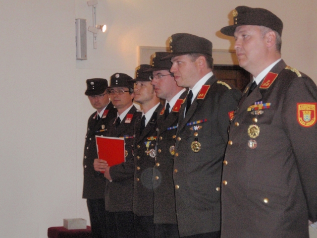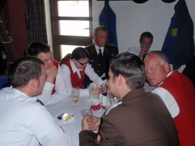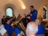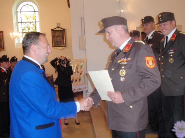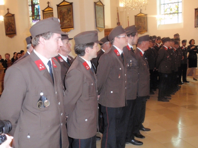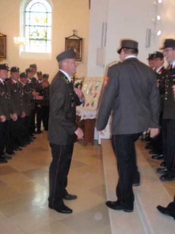 Um 10.00 Uhr feierte unser Herr Pfarrer Pater Paul Gnat die heilige Messe gemeinsam mit den Feuerwehrkameraden von Göttlesbrunn. Die Jugendblasmusik sorgte dabei für die musikalische Umrahmung der Messe. Im Anschluss daran wurden die Beförderungen und Ehrungen durch den Feuerwehrkommandanten OBI Alexander Faust überreicht. Dieser Akt fand aufgrund des schlechten Wetters in der Pfarrkirche statt. Im Zuge der Ehrungen wurden auch einige MusikerInnen durch den FF-Kommandanten und auch durch unseren Bürgermeister Ing. Franz Glock geehrt bzw ausgezeichnet. Nach dem Festakt lud die Gemeinde Göttlesbrunn-Arbesthal die Feuerwehr und die Jugendblasmusik zum Mittagessen in das Gasthaus Jungwirth ein. |