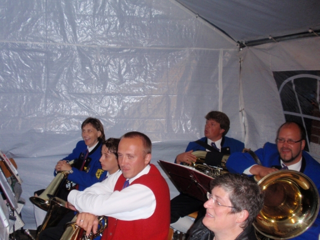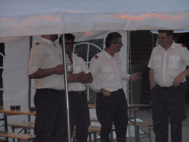 Aufgrund des schlechten Wetters (teilweise starker Regen) wurde die Sonnwendfeier nicht auf dem Altenberg sondern in der Halle des FF-Hauses abgehalten. Der FF-Kommandant OBI Alexander Faust konnte sich trotz des schlechten Wetters, auf ein voll gefülltes Feuerwehrhaus freuen. Die Jugendblasmusik umrahmte das Fest musikalisch mit einem zweistündigen Dämmerschoppen. |