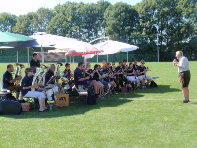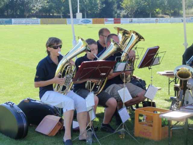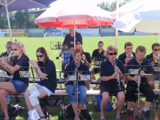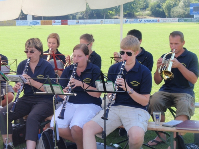 Die Jugendblasmusik sorgte für die auf der Sportanlage ins Ziel kommenden Wanderer für die musikalische Unterhaltung.