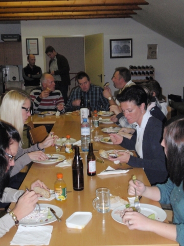 Aufgrund der teilweise schwierigen und „ansatzraubenden“ Musikstücke musste danach eine Pause eingelegt werden. Um jedoch so wenig Zeit wie möglich zu verlieren und rasch wieder weiter spielen zu können, wurden die Speisen vom Heurigenlokal Edelmann in den Aufenthaltsraum der Feuerwehr geliefert.