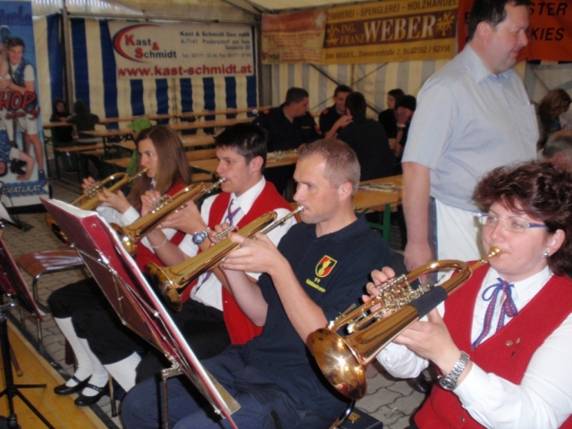 Ab 18.30 Uhr spielte die Jugendblasmusik im großen Festzelt auf. Während dem 2-stündigen Dämmerschoppen füllte sich das Zelt immer mehr mit Festgästen, weshalb sich die Feuerwehr Göttlesbrunn am Ende des Dämmerschoppen bereits über ein volles Zelt freuen konnte. In weiterer Folge sorgte die Musikgruppe "Stockhiatla" mit Tanzmusik noch bis in die frühen Morgenstunden für die musikalische Unterhaltung. |