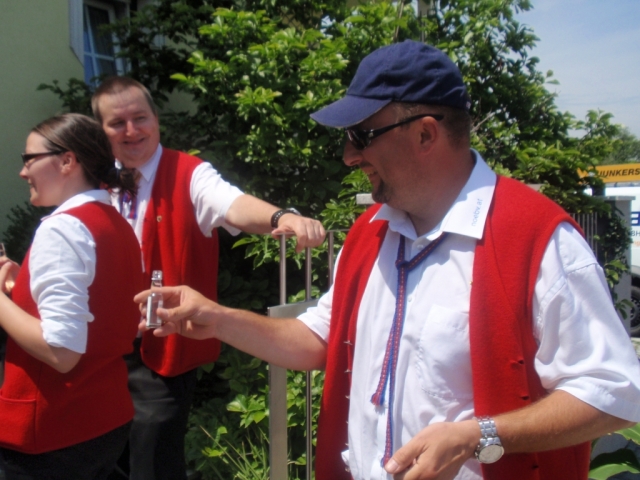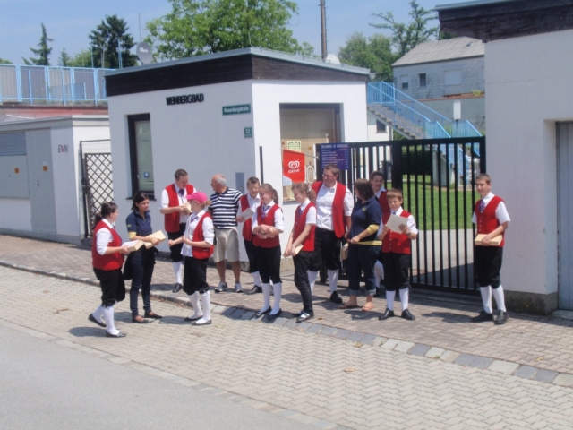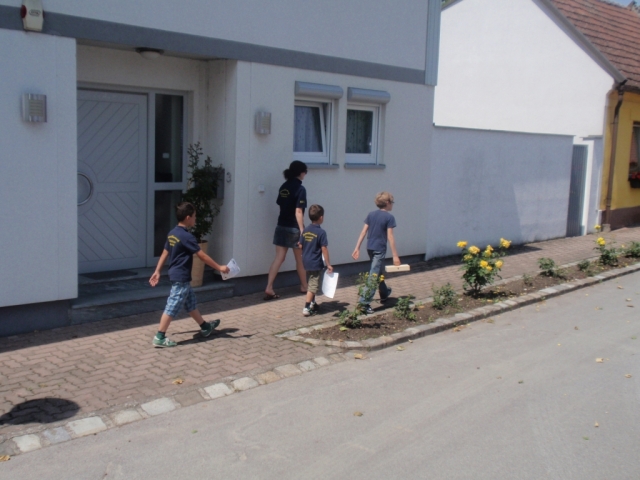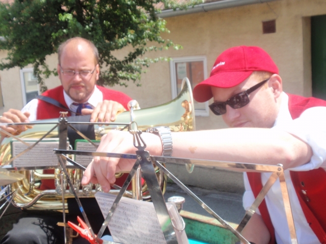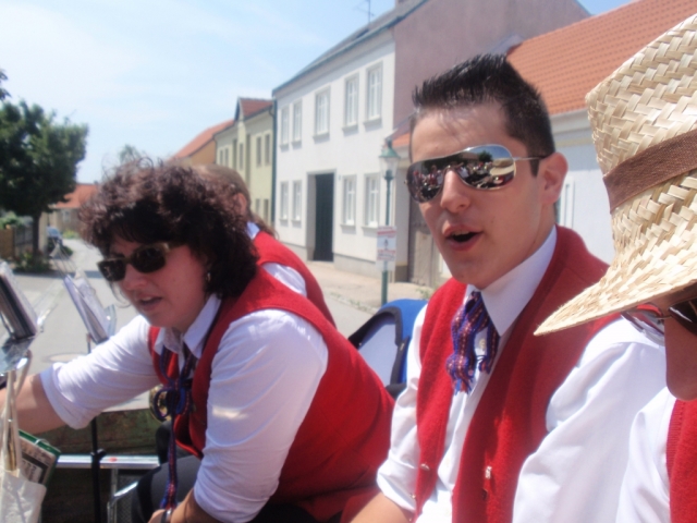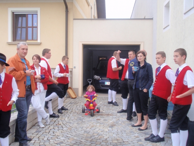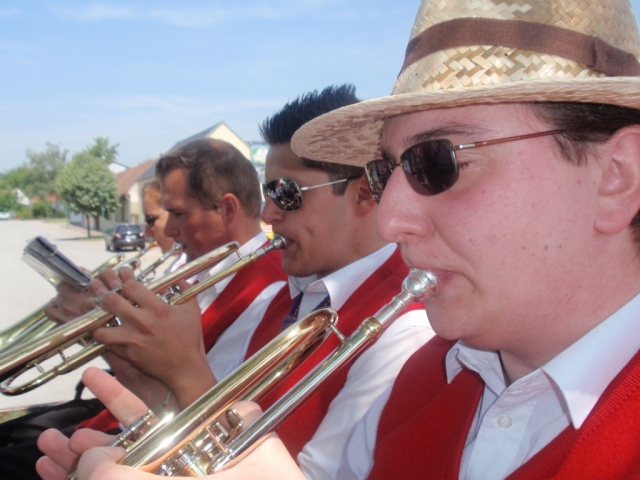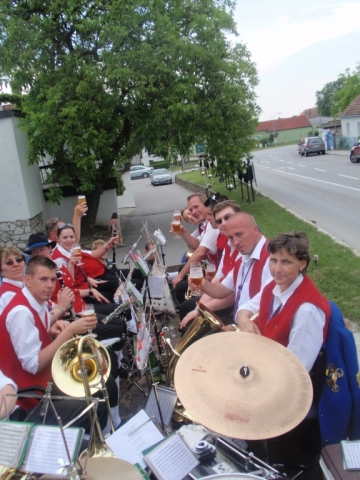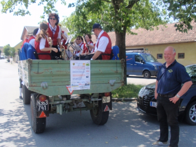 Ein Teil der Musikanten saß dabei auf dem Anhänger und spielte Märsche und Polka. Die restlichen MusikerInnen und Marketenderinnen gingen von Haus zu Haus und ersuchten die Bevölkerung um eine kleine Spende. Gleichzeitig wurde zum dreitägigen Bezirksmusikfest mit Marschwertung vom 15. – 17. Juni 2012 in Göttlesbrunn eingeladen.