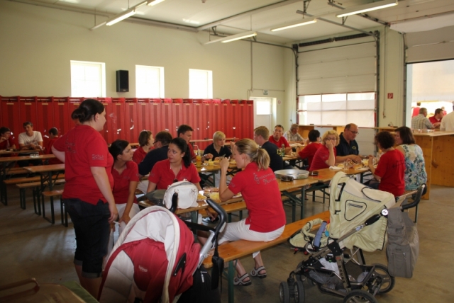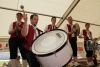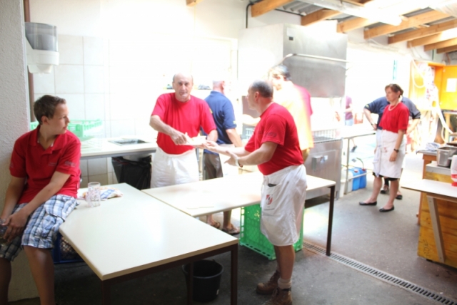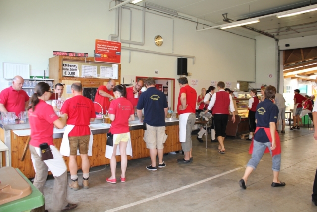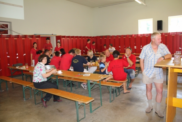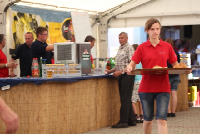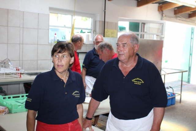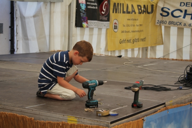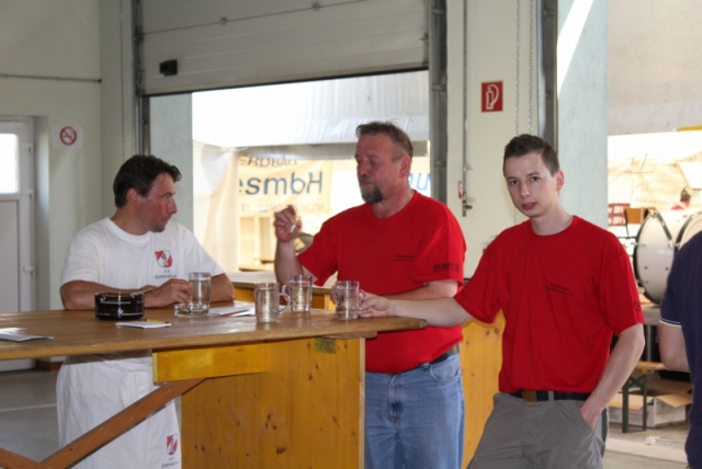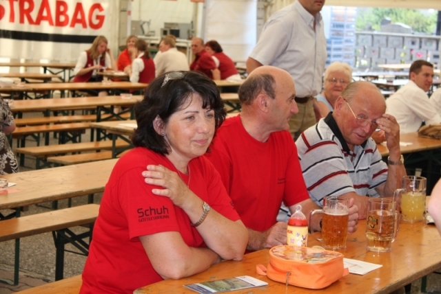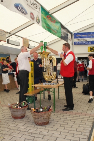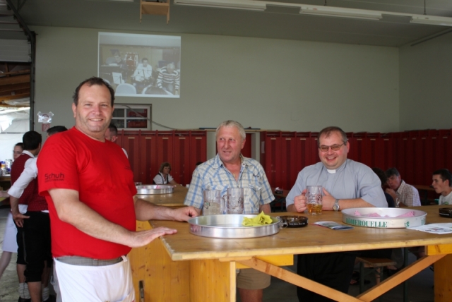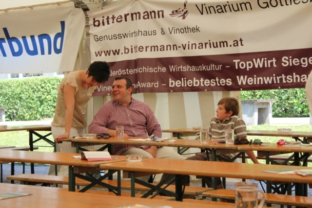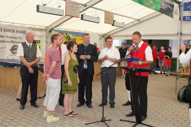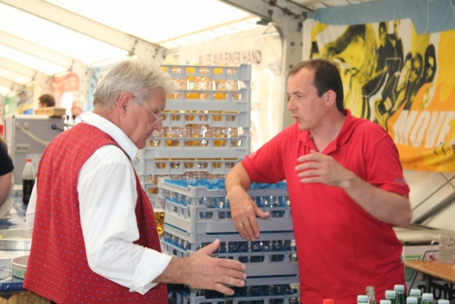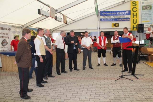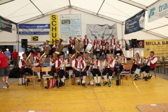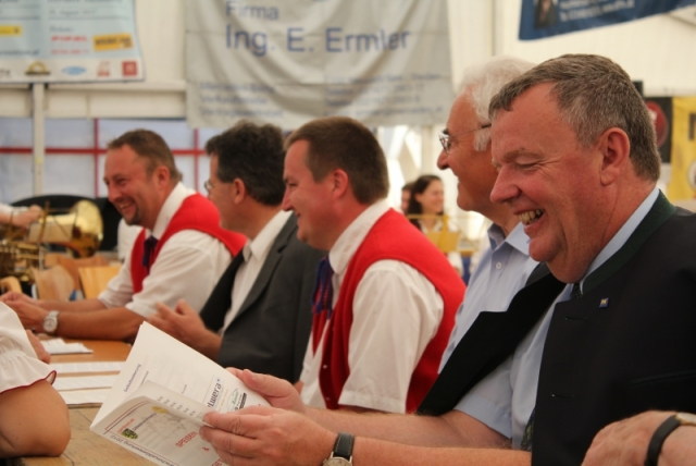 Danach übernahm der Musikverein Schwadorf die musikalische Unterhaltung im Festzelt. Bei Musikstücken wie „Böhmischer Traum“, „Dem Land Tirol die Treue“ oder dem „Wagramer Grenadiermarsch (mit Schlagzeugsolo)“ herrschte eine hervorragende Stimmung im Festzelt, wobei zahlreiche Festgäste auf den Bänken und Tischen lautstark mitklatschten und mittanzten. Aufgrund der guten Stimmung spielte der Musikverein Schwadorf bis ca 15.00 Uhr. Danach wurde durch den Kapellmeister Bernhard Fischer unter der strengen Aufsicht des Hr Bürgermeister Ing. Franz Glock das Schätzspiel durchgeführt. Als Frage war, wie viele sechzehntel Liter Wasser in eine Tuba passen würden. Dabei wurden genau 293 Sechzehntel ermittelt. Die ersten Plätze gingen an Herta Hartl und Anton Sebjanic, welche mit 295 Sechzehntel am nähesten waren. Auf dem zweiten Platz mit 298 Sechzehntel landete Günther Thunshirn. Den Gewinnern wurden Weinkörbe und Gutscheine überreicht. Nach Beendigung der Verlosung gönnten sich auch alle MusikerInnen und HelferInnen zum gemütlichen Ausklang noch das eine oder andere Achterl Wein bzw Krügerl Bier. Die Jugendblasmusik Göttlesbrunn-Arbesthal konnte sich über ein sehr gut besuchtes Bezirksmusikfest freuen.