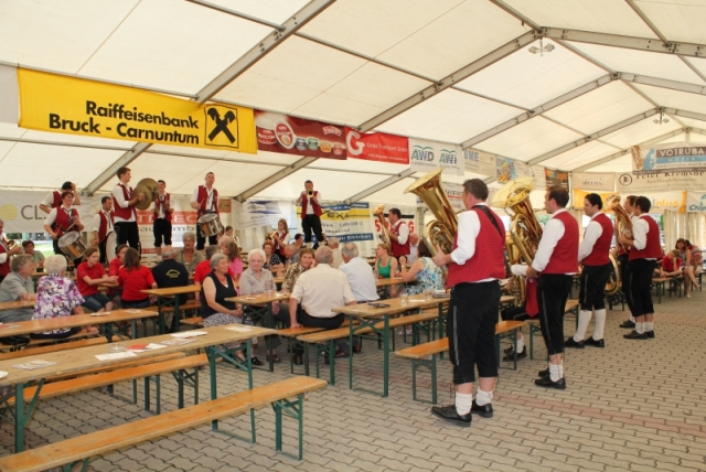 Im Rahmen des Bezirksmusikfestes stand am Sonntag noch eine Feldmesse mit anschließenden Ehrungen der BAG Bruck/Leitha und einem Frühschoppen des Musikvereines Schwadorf auf dem Programm.