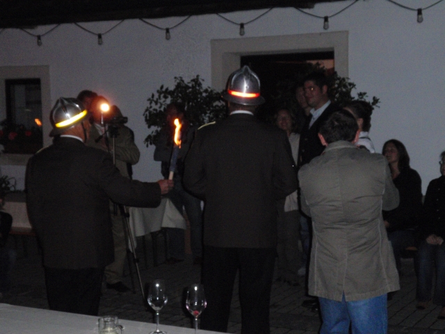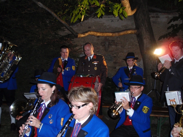 Aufgrund der bevorstehenden Hochzeit von Edelmann Gerhard und Schön Carina wurde von der Feuerwehr Göttlesbrunn ein Fackelzug abgehalten. Dieser wurde von der Jugendlbasmusik musikalisch umrahmt.
