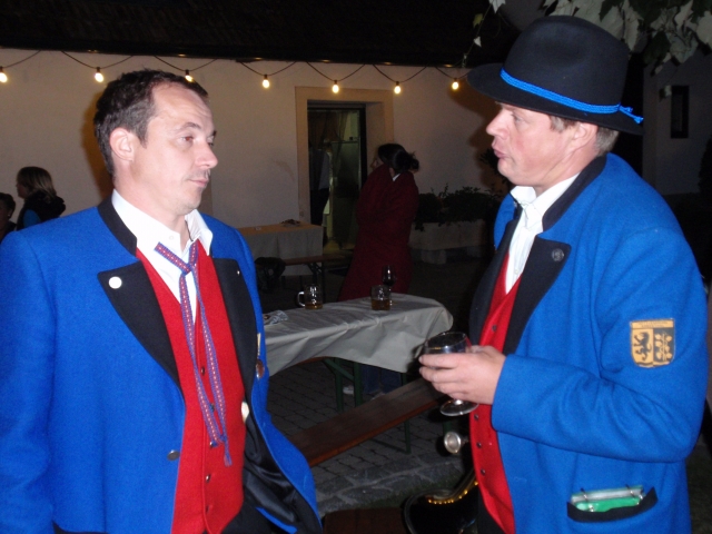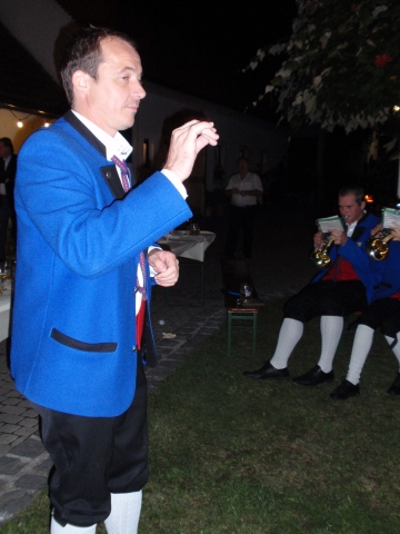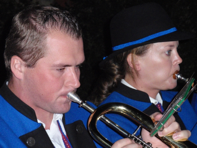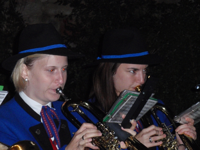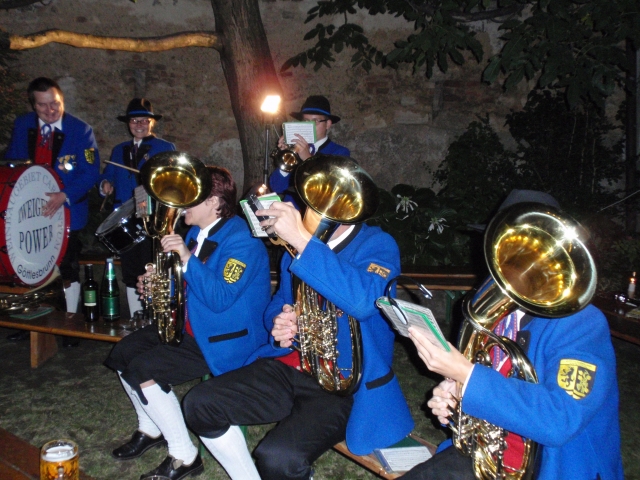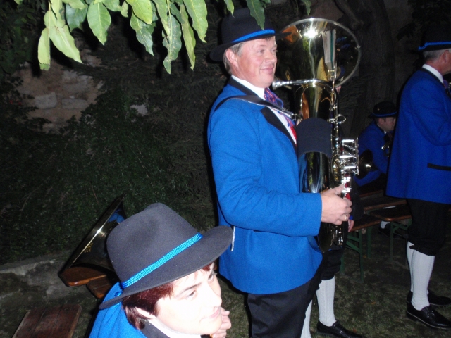 Dabei trafen sich die Mitglieder der Feuerwehr und Jugendblasmusik um 20.30 Uhr beim Feuerwehrhaus. Nach Einbruch der Dunkelheit marschierten die Vereine gemeinsam durch die Ortschaft. Als erstes die Jugendblasmusik mit klingendem Spiel und dahinter die Kameraden der Feuerwehr mit den brennenden Fackeln. Nach dem Ortsrundgang zogen die Vereine im Hause Edelmann ein, wo sie vom zukünftigen Brautpaar und deren Gäste herzlich empfangen wurden. Nach den Festansprachen sorgte die Jugendlasmusik noch bis Mitternacht für die musikalische Unterhaltung. |