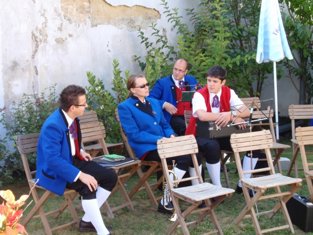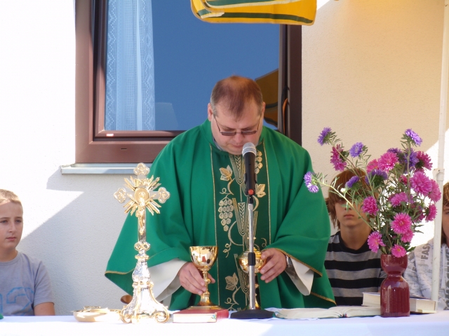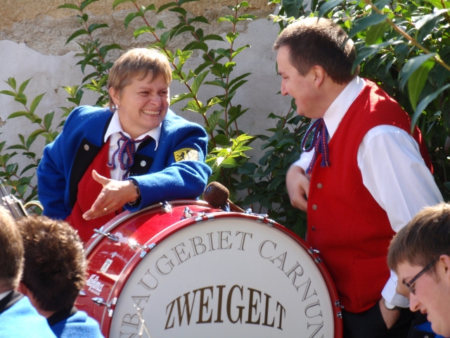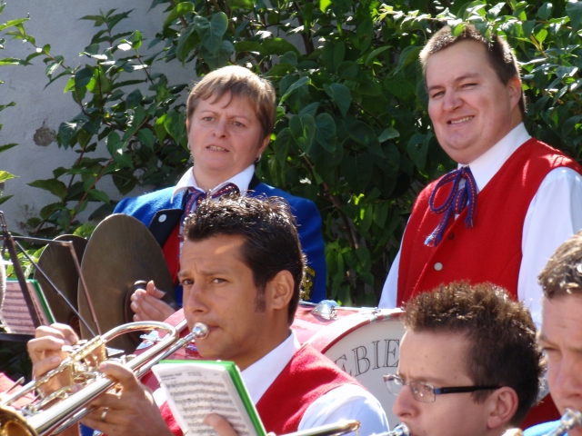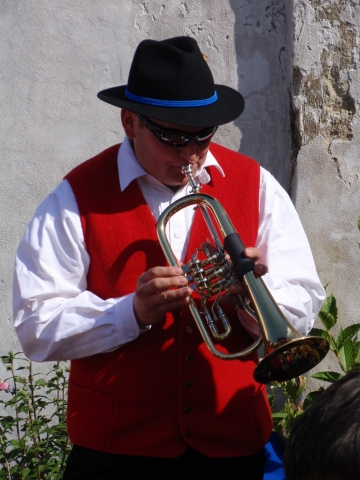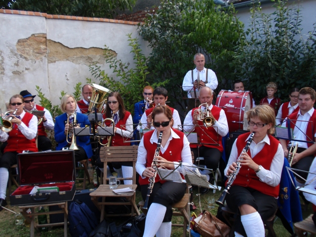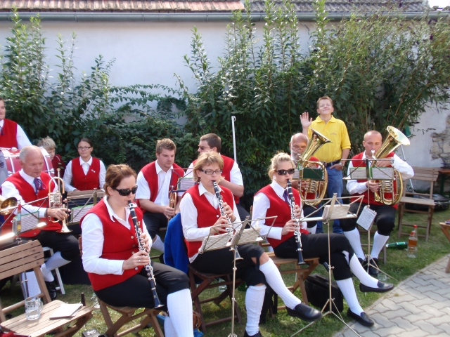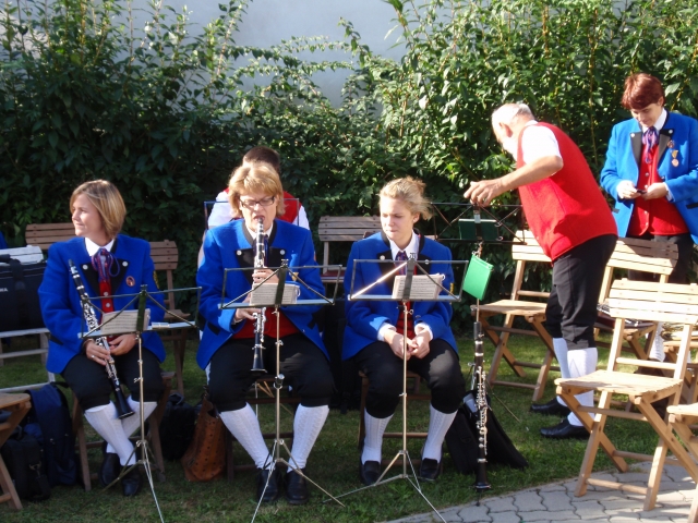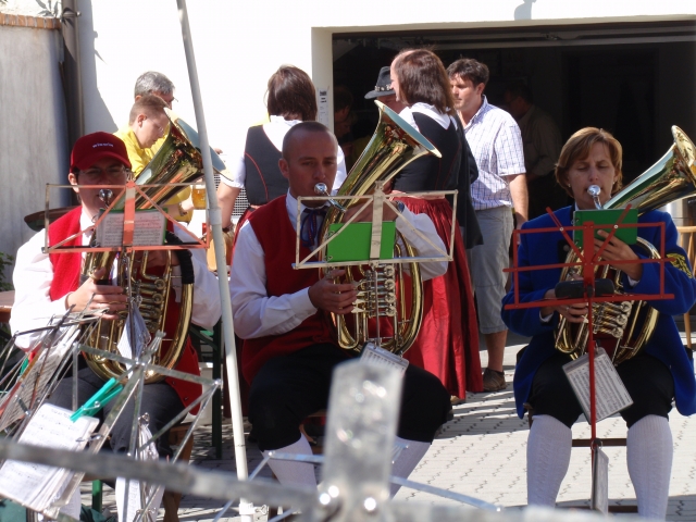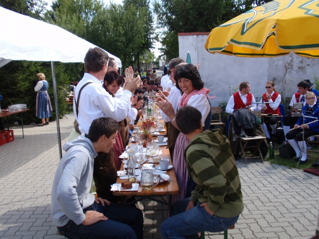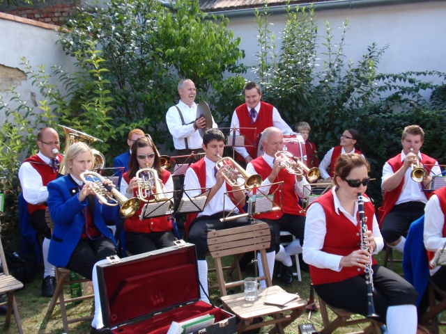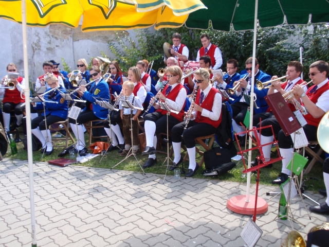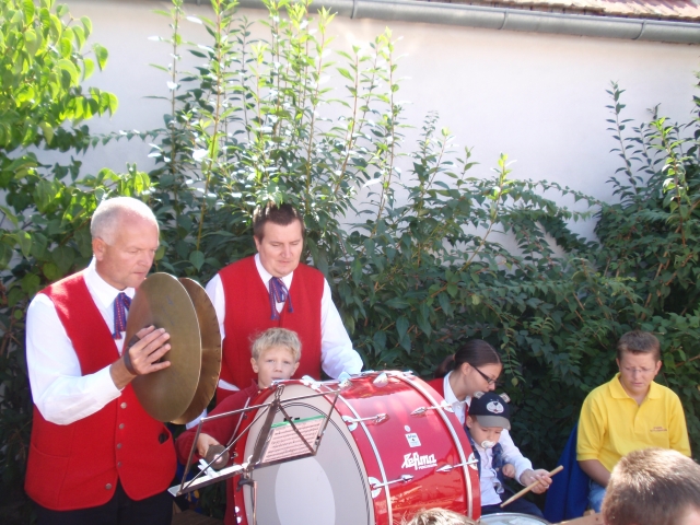 Bei strahlendem Sonnenschein feierte unser Herr Pfarrer Pater Paul GNAT mit zahlreichen Gemeindebürgern die heilige Messe im Pfarrgarten. Im Anschluss daran begeisterte die KUGRUGÖ mit einigen Tänzen und einer neu einstudierten Gesangseinlage. Danach unterhielt die Jugendblasmusik mit einem 2-stündigen Frühschoppen die anwesenden Gäste, wobei zu zahlreichen Musikstücken fleißig getanzt wurde. Dann hatten sich die Musikanten eine Stärkung redlich verdient. Da am frühen Nachmittag noch viele Besucher anwesend waren und die Jugendblasmusik von den Musikanten her spielfähig war, wurden noch einige Musikstücke zum Besten gegeben. Aufgrund der guten Stimmung und des großartigen Applaus resultierte daraus erneut eine 2-stündige Spielerei, die von unserem Herrn Bürgermeister Ing. Franz GLOCK am Schlagzeug tatkräftig unterstützt wurde. |