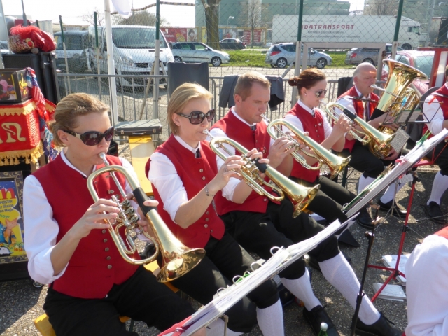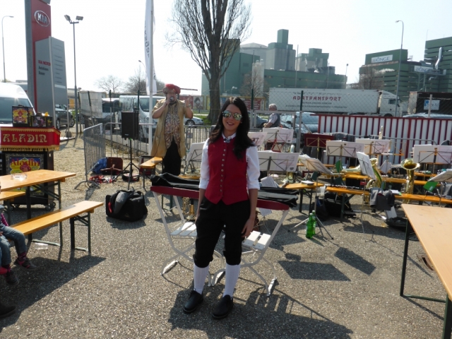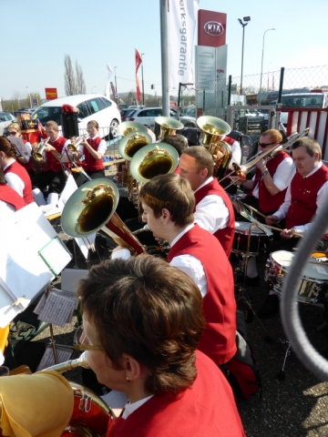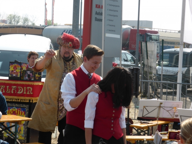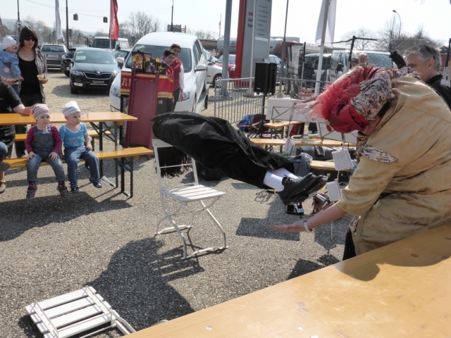 In der Zeit von 11.00 Uhr bis 14.30 Uhr wurden die eintreffenden Autofreunde bzw Kaufinteressenten auf dem Gelände der Firma Skoda Bauer mit zahlreichen Musikstücken unterhalten. In der Pause sorgte ein Zauberer für die Unterhaltung der Gäste, wobei auch einige unserer Musikerinnen verzaubert wurden. Für Speis und Trank wurde durch die Mitarbeiter bestens gesorgt.