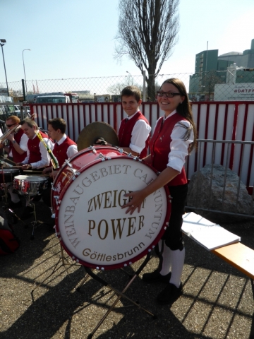 Die Jugendblasmusik Göttlesbrunn-Arbesthal sorgte im Zuge des Autofrühlings in Bruck/Leitha, wieder für die musikalische Umrahmung.