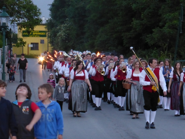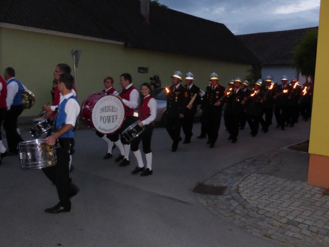Aufgrund der bevorstehenden Hochzeit von Martina Rupp und Christian Schuh, wurde von der Feuerwehr Göttlesbrunn ein Fackelzug veranstaltet, welcher von der Jugendblasmusik musikalisch umrahmt wurde.