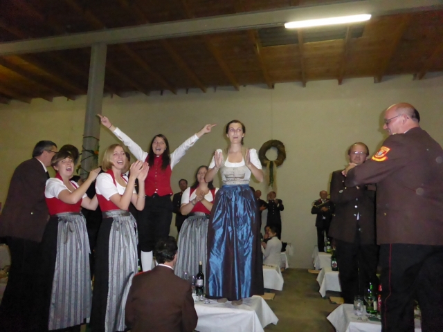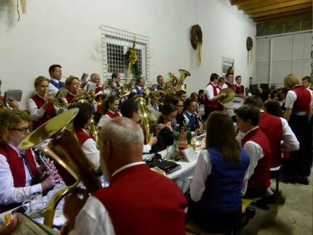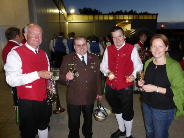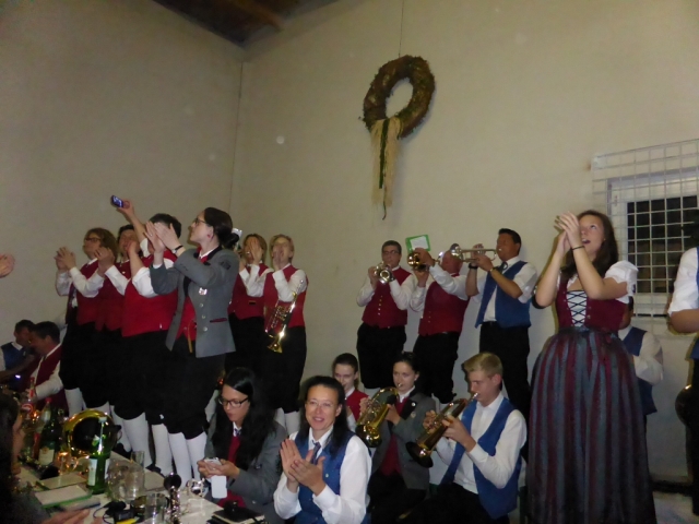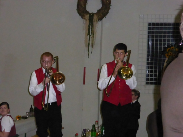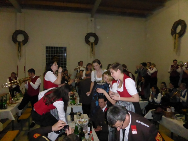 Nach den Festansprachen ließen die Feuerwehr-Kameraden das zukünftige Brautpaar hochleben. Danach wurde bis in die frühen Morgenstunden zu Speis und Trank geladen. Die Jugendblasmusik Göttlesbrunn und der Musikverein Sarasdorf sorgten anschließend noch mit zahlreichen Musikstücken bis ca 03.00 Uhr in der Früh für die musikalische Umrahmung, wobei in der Halle eine hervorragende Stimmung herrschte und die zahlreichen Gäste bei Stücken wie "Böhmischer Traum", "Dem Land Tirol die Treue", „Treib die Gänse raus“ usw, auf den Bänken und Tischen stehend fleißig mitklatschten. Die Jugendblasmusik Göttlesbrunn-Arbesthal wünscht unserer Marketenderin und Vorstandsmitglied Martina Rupp und Christian Schuh, welcher in seinen Jugendjahren ebenfalls ein Musikinstrument erlernte nochmals alles Gute und viel Glück für die Zukunft. |
