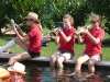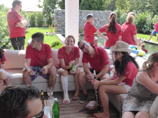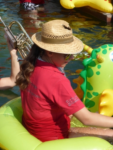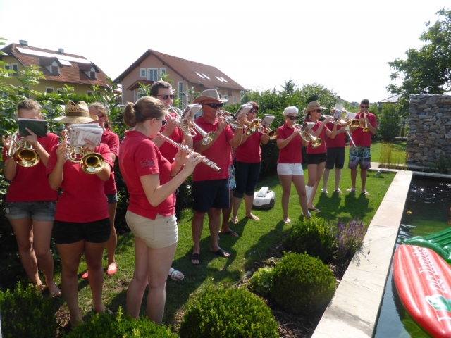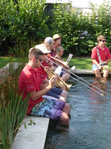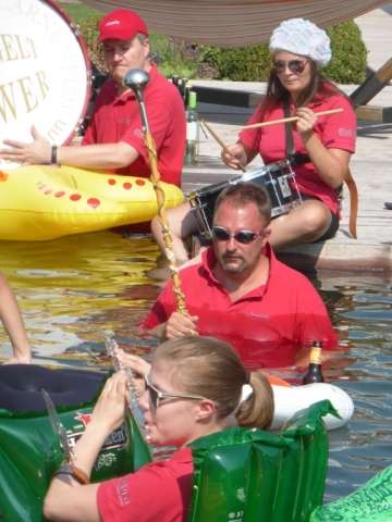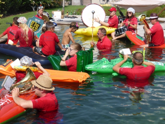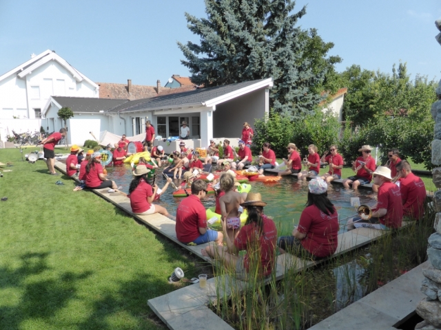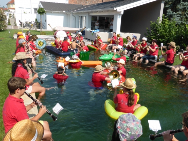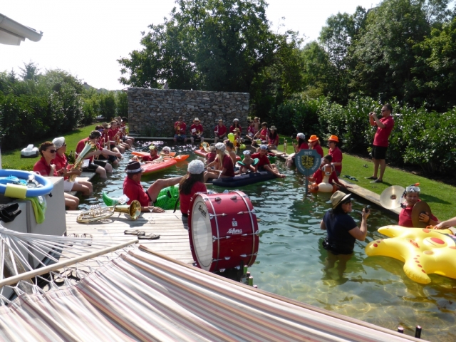 Jeder Verein hat nach der Nominierung 48 Stunden Zeit ein Video zu drehen. Dabei geht es darum ein Musikstück im Wasserbereich (egal ob Kübel, Wasserbecken, Teich, Fluss, usw.) zu spielen. Nachdem wir von unserer Nominierung erfahren haben mussten wir schnell handeln, denn bei Nichteinhaltung des Termines müsste die JBM einen Heurigenbesuch bezahlen. Es wurde jedoch kurzfristig geschafft eine geeignete Örtlichkeit aufzutreiben und zahlreiche MusikerInnen zu motivieren. Die MusikerInnen nahmen im bzw am Rand des Beckens Aufstellung. Anschließend wurde der Göttlesbrunner-Musikantenmarsch zum Besten gegeben. Zum Schluss wurden von der JBM Göttlesbrunn-Arbesthal noch der MV Höflein, MV Moosbrunn und MV Reinsberg nominiert, welche ab heute ebenfalls 48 Stunden Zeit haben ein ähnliches Video auf die Beine zu stellen, ansonsten freuen sich die MusikerInnen von Göttlesbrunn-Arbesthal schon auf die Einladung zum Spanferkel-Essen von dem Verein der es in dieser Zeit nicht schafft. Auf unserer Homepage ist rechts unten ein Link (das Video zur Cold-Water-Challenge 2014 angebracht. Von dort gelangt man direkt zum Video. Abschließend möchten wir uns noch bei Schuh Stefan und Rödler Theresa für die Benützung des Pools und Bewirtung bedanken. |