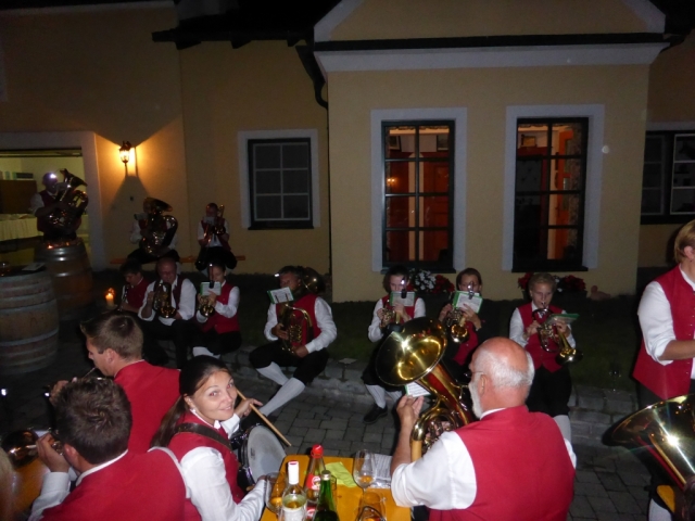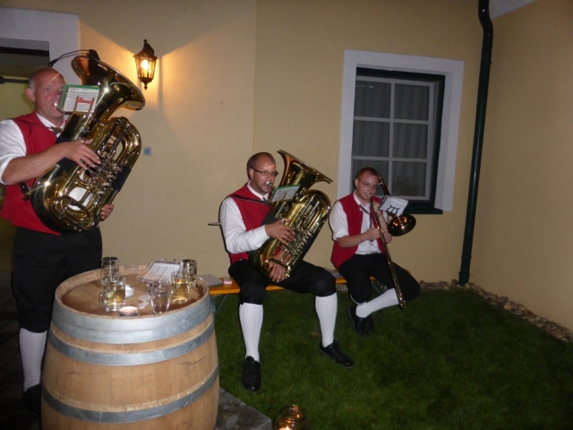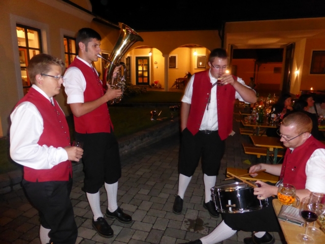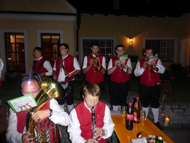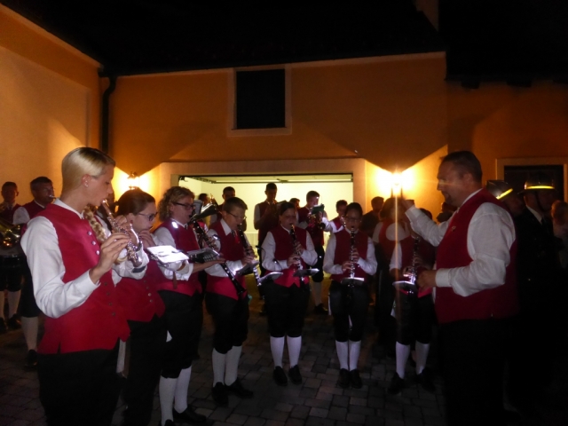 Wie es in Göttlesbrunn vor einer bevorstehenden Hochzeit eines Feuerwehrkameraden so Brauch ist, veranstaltete die Feuerwehr gemeinsam mit der Musik wieder einen Fackelzug. Dabei trafen sich die Mitglieder der freiwilligen Feuerwehr Göttlesbrunn und die Jugendblasmusik Göttlesbrunn-Arbesthal gegen 20.00 Uhr beim Feuerwehrhaus. Nach Einbruch der Dunkelheit marschierte die Jugendblasmusik Göttlesbrunn im klingenden Spiel als erstes, gefolgt von der Feuerwehr mit den brennenden Fackeln durch die Ortschaft. Der erste Weg führte dabei bei der Familie Glock vorbei, wo sich das zukünftige Brautpaar und die geladenen Gäste anschlossen und durch den Ort mitmarschierten. Nach der Runde marschierte der ganze Zug in den Innenhof der Familie Glock ein, wo in weiterer Folge die Ansprache des FF-Kommandanten OBI Alexander Faust stattfand. Abschließend durfte noch Oberlöschmeister Thomas Zand seine Dankensworte an die zahlreich erschienenen Kameraden und geladenen Gäste sprechen. Nach den Ansprachen ließen die Feuerwehr-Kameraden das zukünftige Brautpaar hochleben. Danach wurde bis in die frühen Morgenstunden zu Speis und Trank geladen. Die MusikerInnen sorgten noch bis Mitternacht mit zahlreichen Musikstücken für die musikalische Unterhaltung. Die Jugendblasmusik Göttlesbrunn-Arbesthal wünscht Lisa Glock und Thomas Zand alles Gute und viel Glück für die Zukunft.