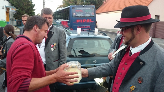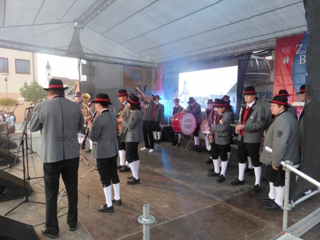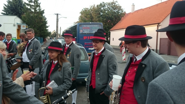 Um 16.00 Uhr fuhren wir, angeführt von Bürgermeister Ing. Franz Glock vom Feuerwehrhaus Göttlesbrunn mit einem Autobus der Fa PIPAL in die Slowakei. Dort fand aufgrund des 700-jährigen Bestehens ein großes Fest statt. In der Zeit von 18.00 bis 18.30 Uhr sorgten die MusikerInnen der Jugendblasmusik Göttlesbrunn-Arbesthal mit Märschen und die Volkstanzgruppe KUGRU-GÖ mit Tanzeinlagen für die Unterhaltung der zahlreich anwesenden Gäste.