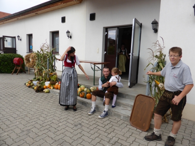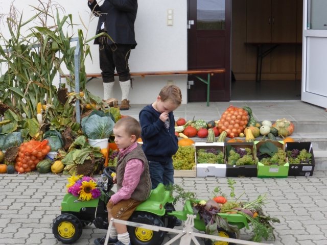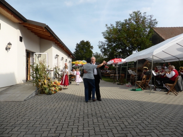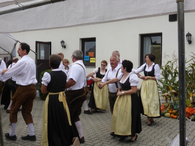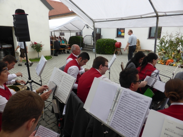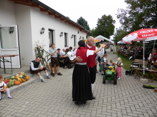 Gegen 10 Uhr marschierten die MusikerInnen, die KUGRU-GÖ und Dechant Paul Gnat mit der Erntekrone vom Kirchenplatz in den Pfarrhof hinüber, wo anschließend die heilige Messe abgehalten wurde. Nach der Messe sorgte die KUGRU-GÖ, musikalisch begleitet von einer kleinen Bläsergruppe der JBM für eine Tanzeinlage. Danach wurden die zahlreich anwesenden Gäste mit einem fast dreistündigen Frühschoppen unterhalten. Da zu dieser Zeit noch nicht alle Musikwünsche erfüllt waren, entschloss man sich kurzfristig, nach dem Essen nochmals mit den zu dieser Zeit noch anwesenden MusikerInnen zu einem Nachmittagsschoppen, welches über eine Stunde dauerte. Dabei konnten die noch ausstehenden Musikwünsche alle bestens erfüllt werden. Für das leibliche Wohl der Gäste, wurde wie immer durch die zahlreichen freiwilligen Helfer der Pfarre Göttlesbrunn bestens gesorgt.