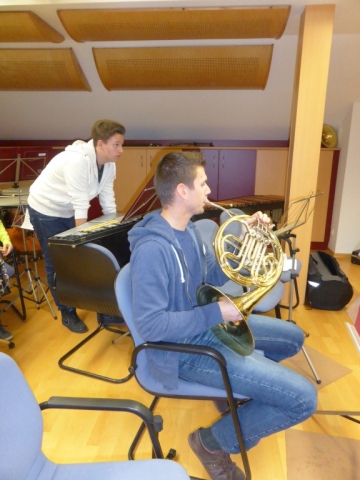 Ziel dabei war es auch heuer wieder, zahlreiche Musikstücke für das am 21. Dezember 2014 in der Pfarrkirche Göttlesbrunn stattfindende Konzert durchzuspielen. Weiters ging es auch darum, am „Feinschliff“ für die beiden Konzertwertungsstücke zu arbeiten. Die Jugendblasmusik tritt heuer wieder in der zweithöchsten Stufe „C“ an. Für die große Pause wurden wie jedes Jahr auch heuer wieder Familien-Pizzen bestellt um den Probentag gestärkt zu überstehen. Da dieses Jahr auch wieder ein sehr anstrengendes Programm bevorsteht, wird noch ein zweiter Probensamstag abgehalten. |