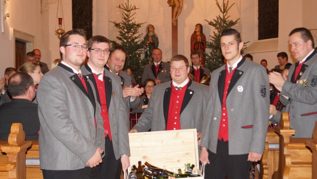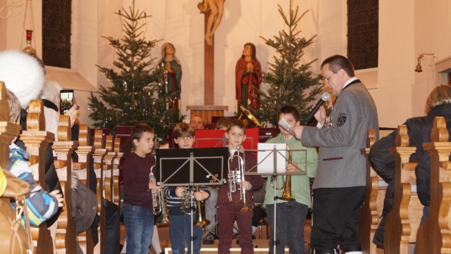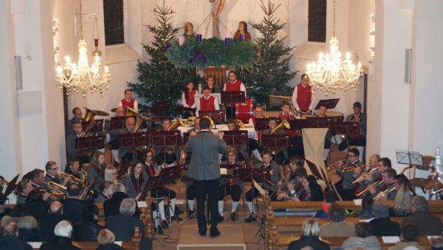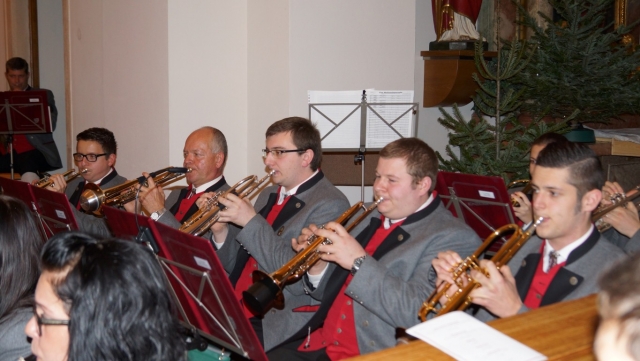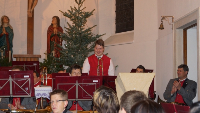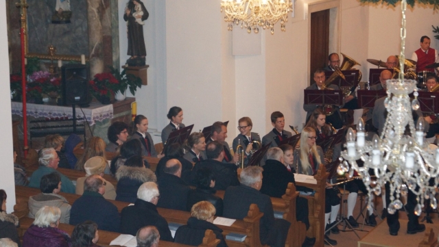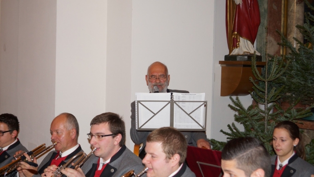 Dieser Einladung kamen sehr viele Besucher nach, wodurch sich die Jugendblasmusik wieder über eine voll besetzte Kirche freuen konnte. Unser Obmann Thomas Flamm durfte dabei auch zahlreiche Ehrengäste begrüßen. An der Spitze, Bürgermeister Ing. Franz Glock, weiters Vize-Bürgermeister Franz Schwarz, Ehrenobmann Franz Gratzer und zahlreiche MusikerInnen aus den umliegenden Ortschaften. Unserem Kapellmeister Bernhard Fischer gelang es auch heuer wieder ein sehr anstrengendes und abwechslungsreiches Programm für das Konzert zusammenzustellen, wobei neben den beiden Konzertwertungsstücken auch eine Weihnachtsnovelle zum Besten gegeben wurde. Bei dieser diente das Blasorchester nur als spielerische Begleitung, für den eine Weihnachtsgeschichte erzählenden Solisten Karl Wildberger. Weiters spielten auch die Nachwuchsmusiker Elias Huber, Paul Grassl, Mathias Schwarz, Marcel Krackhofer und Martin Hirmann als Quintett ein Weihnachtslied.