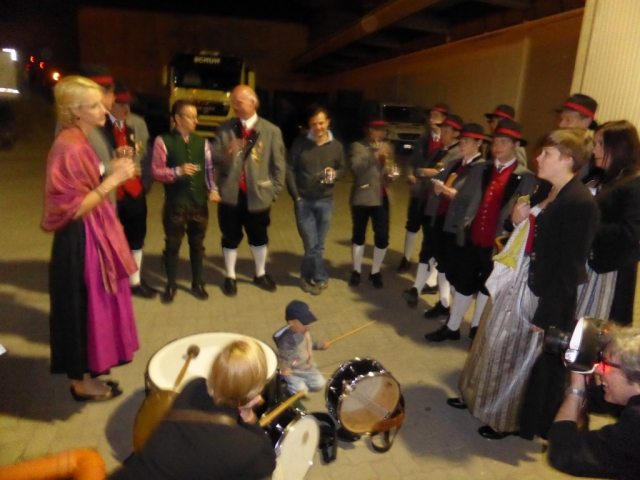 Wie es in Göttlesbrunn vor einer bevorstehenden Hochzeit eines Feuerwehrkameraden so Brauch ist, veranstaltete die Feuerwehr gemeinsam mit der Musik wieder einen Fackelzug. Dabei trafen sich die Mitglieder der freiwilligen Feuerwehr Göttlesbrunn und die Jugendblasmusik Göttlesbrunn-Arbesthal gegen 20.00 Uhr beim Feuerwehrhaus. Nach Einbruch der Dunkelheit marschierte die Jugendblasmusik Göttlesbrunn-Arbesthal, gefolgt von der Feuerwehr mit den brennenden Fackeln durch den Ort. Der erste Weg führte dabei zur Halle der Firma Schuh, wo sich das zukünftige Brautpaar und die geladenen Gäste anschlossen und durch den Ort mitmarschierten. Nach der Runde marschierte der ganze Zug auf das Gelände der Fa Schuh ein, wo in weiterer Folge die Ansprache des FF-Kommandanten OBI Alexander Faust stattfand. Abschließend durfte noch Stefan Schuh seine Dankensworte an die zahlreich erschienenen Kameraden und geladenen Gäste sprechen. Nach den Festansprachen ließen die Feuerwehr-Kameraden das zukünftige Brautpaar hochleben. Danach wurde zu Speis und Trank geladen und bis in die frühen Morgenstunden gefeiert. Die Jugendblasmusik sorgte dabei noch mit zahlreichen Musikstücken bis ca 01.00 Uhr für die musikalische Umrahmung, wobei in der Halle eine hervorragende Stimmung herrschte und die zahlreichen Gäste bei Stücken wie "Böhmischer Traum", "Dem Land Tirol die Treue", „Treib die Gänse raus“ usw, auf den Bänken und Tischen stehend fleißig mitklatschten. Für die MusikerInnen war es auch ein besonderer Fackelzug da sowohl die zukünftige Braut Theresa aktiv auf der Querflöte und Bräutigam Stefan aktiv auf der Trompete beim Verein mitspielen. Die Jugendblasmusik Göttlesbrunn-Arbesthal wünscht dem zukünftigen Brautpaar nochmals alles Gute und viel Glück für die Zukunft.