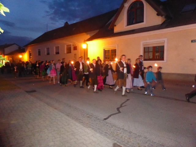 Aufgrund der bevorstehenden Hochzeit von Theresa Rödler und Stefan „Mucky“ Schuh, wurde von der Feuerwehr ein Fackelzug veranstaltet, welcher von der Jugendblasmusik musikalisch umrahmt wurde.