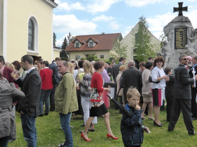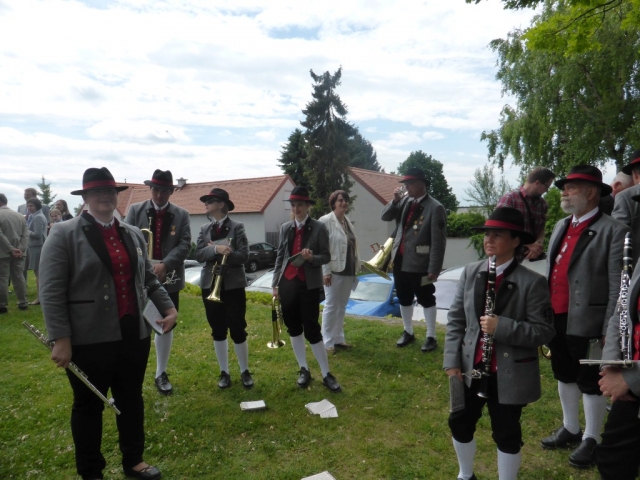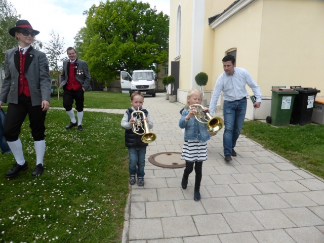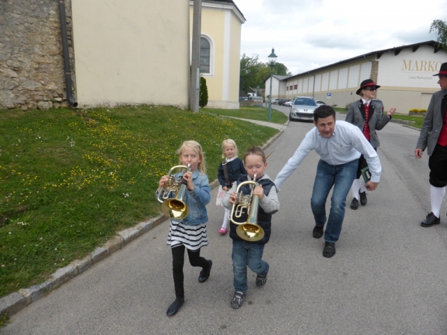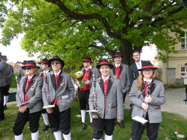 Dabei marschierte die Jugendblasmusik vor den Erstkommunions-Kindern vom Pfarrhof in Richtung Kirche. Nach der heiligen Messe waren alle noch zur Agape vor der Kirche geladen. Die Jugendblasmusik spielte bei der Agape noch einige Märsche und Polka.