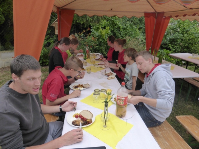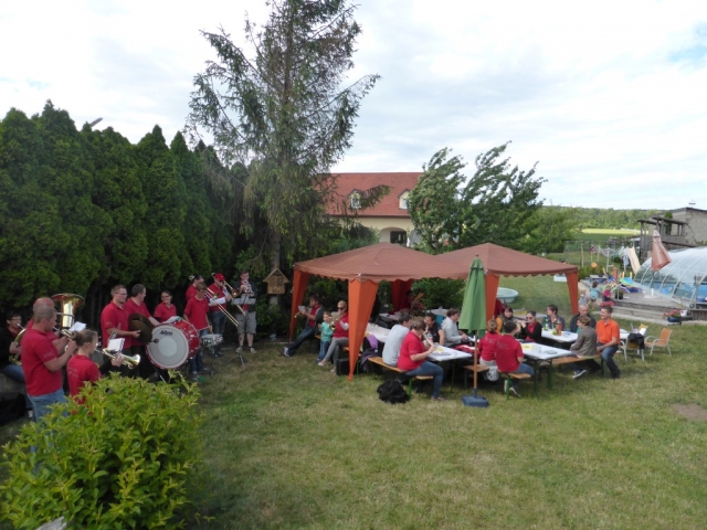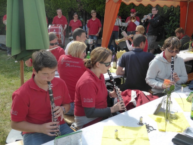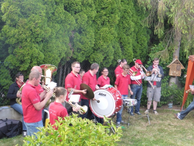 Wie es bei der JBM Göttlesbrunn-Arbesthal bereits Tradition ist wurden wir von den Jungeltern zu Speis und Trank geladen. Nach den Glückwünschen durch Obmann Thomas Flamm wurden noch einige Märsche und Polka zum Besten gegeben. Wohlverdient wurde anschließend durch den Grillmeister Wolfgang zu Speis und die Hausherrin Claudia-Elisabeth zu Trank und gemütlichen Beisammensein geladen. Die Jugendblasmusik bedankt sich auf diesem Wege nochmals für die zweimalige Einladung (Frühstück bei Tag der Blasmusik sowie Ständchen am Nachmittag) und wünscht den Jungeltern alles Gute.
