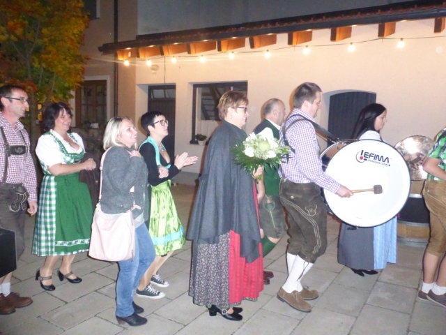 Unsere Schlagzeugerin Leopoldine Schulz lud anlässlich ihres 50. Geburtstages zur großen Feier nach Höflein in die Halle der Familie Hirschmann.