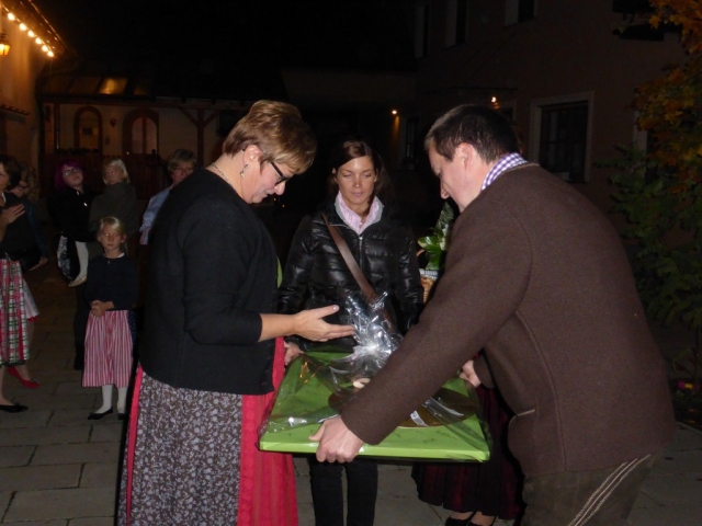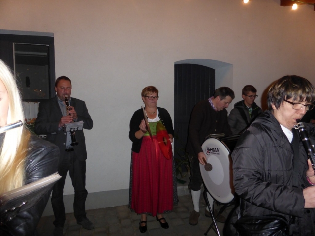 Gegen 18.00 Uhr trafen sich die Mitglieder der Jugendblasmusik Göttlesbrunn-Arbesthal im Innenhof der Familie Hirschmann. Anschließend spielten wir einige Musikstücke für die geladenen Gäste und überreichten nach einer Ansprache durch Obmann Thomas Flamm ein Geschenk. Anschließend wurde von der Jubilarin in die Halle zu Speis und Trank geladen. Normalerweise sollte Leopoldine Schulz mit einigen Vorführungen überrascht werden, wobei die größte Überraschung ihr selbst gelang, indem Leopoldine und ihr langjähriger Lebenspartner Herbert Hirschmann noch vor Beginn der eigentlichen Feierlichkeiten die standesamtliche Hochzeit vor Ort durch den bereits anwesenden Standesbeamten Peter Schenzel ankündigten, wofür es von den geladenen Gästen tobenden Applaus gab. Diese Überraschung ist tatsächlich geglückt, da außer den Trauzeugen keiner von dieser geplanten Hochzeit Bescheid wusste. Nach der standesamtlichen Hochzeit wurde noch in doppelter Weise, einerseits zum Geburtstag und anderseits dem neuen Brautpaar gratuliert. Im Anschluss wurde bei Speis und Trank gebührend gefeiert. Kurzfristig wurde auch beschlossen, wie es bei einer Hochzeit so üblich ist die Braut in das Gasthaus „Zum Spitz“ zu entführen. Eine kleine Gruppe der JBM sorgte mit Märschen und Polka bis zum Eintreffen des Bräutigams für die musikalische Umrahmung im Gasthaus. Danach ging es wieder zurück in die Halle der Fam Hirschmann, wo noch bis in die frühen Morgenstunden gefeiert wurde. Die Mitglieder der JBM Göttlesbrunn-Arbesthal bedanken sich nochmals recht herzlich für die Einladung und wünschen Leopoldine alles Gute und Gesundheit zum 50. Geburtstag sowie dem Brautpaar Leopoldine und Herbert Hirschmann alles Gute für die Zukunft.