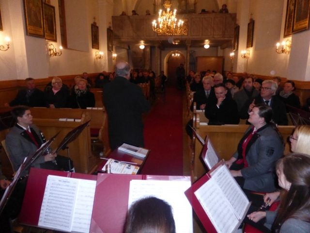 Ab 16.00 Uhr sorgten die MusikerInnen in einer sehr gut besuchten Pfarrkirche mit verschiedenen Musikstücken für eine tolle Unterhaltung. In der Pause luden die Sportfreunde Berg, welche auch gleichzeitig Veranstalter waren, zu Speis und Trank. Danach wurde der zweite Teil zum Besten gegeben. Aufgrund des zahlreichen Applauses der Konzertbesucher und der guten Stimmung wurden zum Abschluss noch drei Märsche als Zugabe gespielt. Danach ließen die Mitglieder der Jugendblasmusik den Abend noch gemütlich in Arbesthal beim Giebelheurigen ausklingen. |