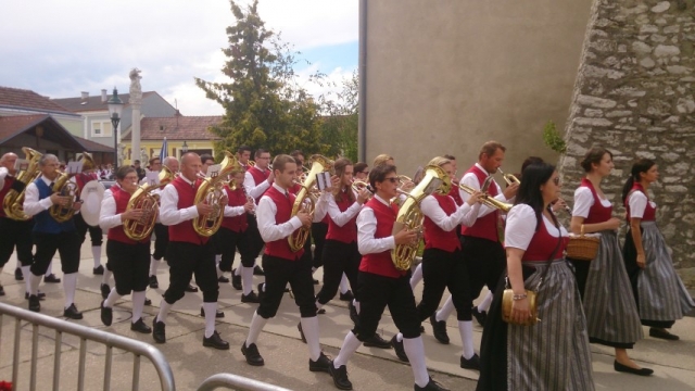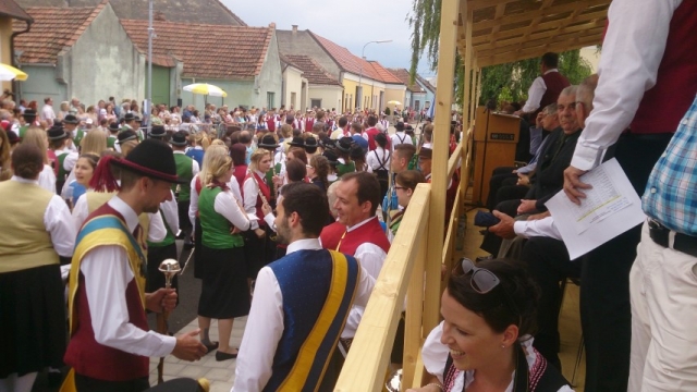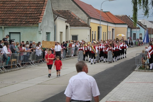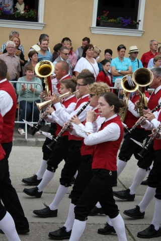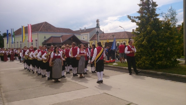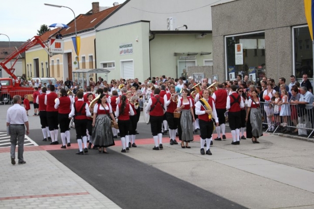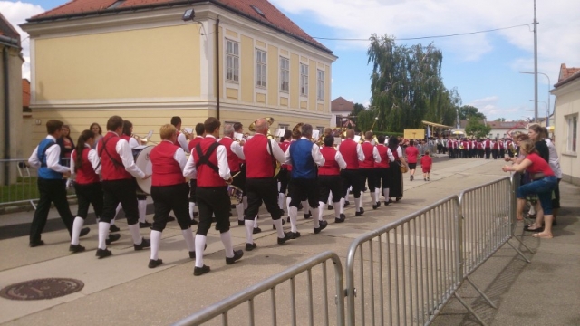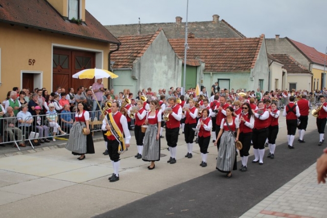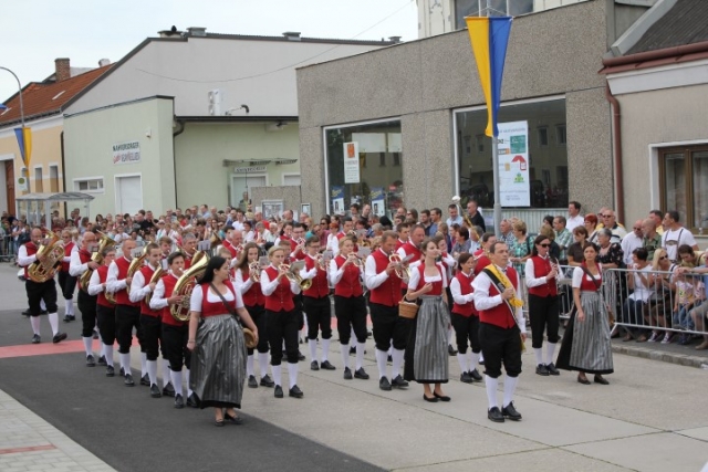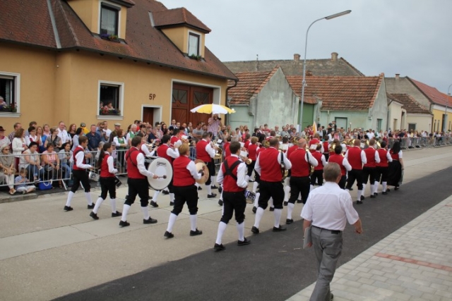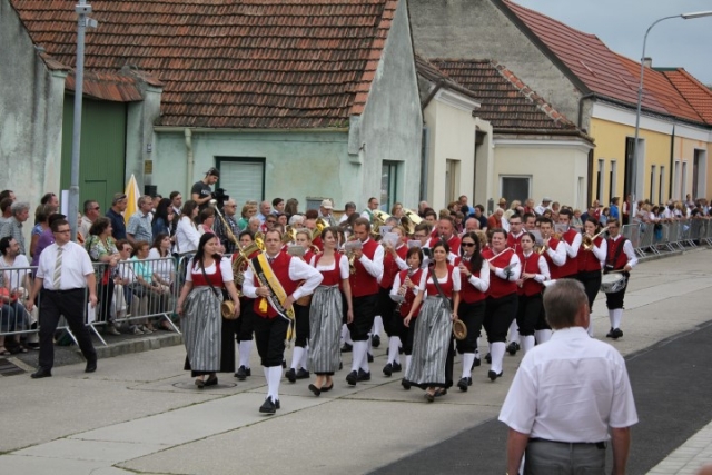 Ab 15 Uhr begann das Spektakel mit dem Einmarsch der 24 teilnehmenden Kapellen. Die Musiker und Musikerinnen versammelten sich vor der Ehrentribüne, wo nach den Begrüßungsworten einiger Ehrengäste das traditionelle Gemeinschaftskonzert abgehalten wurde. Danach startete die Marschmusikbewertung mit der Gastgeberkapelle Rauchenwarth, die neben 10 anderen Kapellen in der höchsten Stufe E antrat. Weitere 11 Kapellen traten in Stufe D und jeweils 1 in Stufe C und B an. Die Jugendblasmusik Göttlesbrunn-Arbesthal marschierte als 7. Kapelle unter Stabführer Johann Graßl mit dem Standschützen-Marsch ein und führte unter den strengen Augen des Bewerterteams das übliche Programm der Stufe D vor. Gleich nach dem Abtreten zeigten sich bei einigen Musikern gemischte Gefühle über die erbrachte Leistung. Die an die Wertung anschließende Auswertung brachte das Ergebnis, dass die Jugendblasmusik mit 83 Punkten gerade noch einen ausgezeichneten Erfolg erreichte. Der Tagessieg ging diesmal mit 95,5 Punkten an den Musikverein Sarasdorf. Den zweiten Platz auf dem Stockerl durften sich der Musikverein Sommerein und der Musikverein Au/Leithagebirge mit 94,5 Punkten teilen und der dritte Platz ging an den Musikverein Götzendorf mit 94 Punkten.