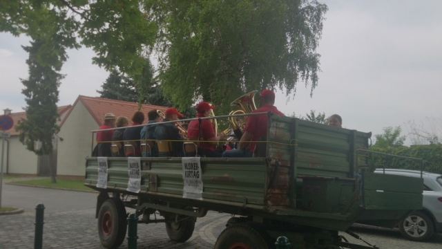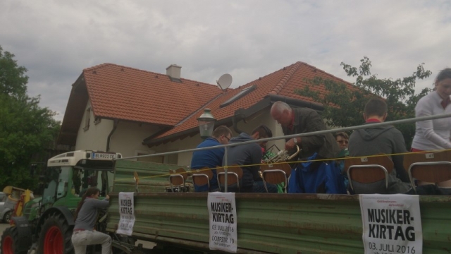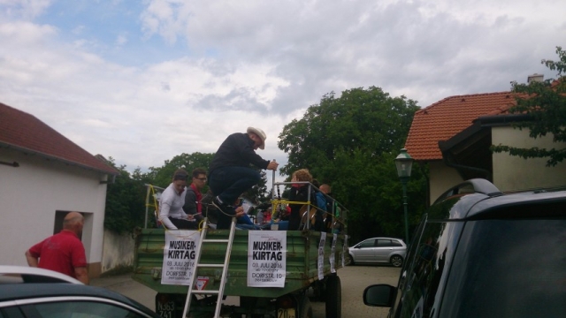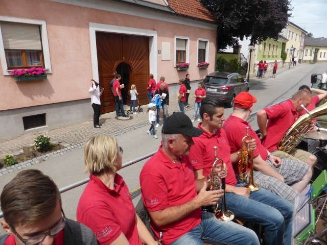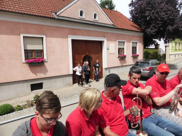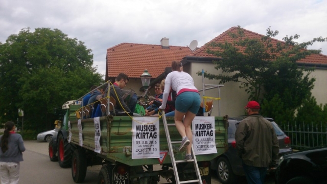 Pünktlich um 9 Uhr ging es ab nach Arbesthal, wo sich Alle erstmal mit einem Frühstück bei unserer Musikerin Claudia-Elisabeth Schwarz für den anstehenden Tag stärken konnten. Danach ging es wieder nach Göttlesbrunn. Ein kleiner Teil der Kapelle wurde mit dem Traktor durch die Ortschaft chauffiert und sorgte so für die musikalische Unterhaltung der Ortsbewohner. Hier möchten wir uns bei Franz Taferner recht herzlich bedanken, welcher uns auch heuer wieder Traktor und Anhänger zur Verfügung stellte. Alle restlichen Mitglieder waren dafür zuständig, die Einladungen für unseren Musikerkirtag am 3. Juli zu verteilen und die Bevölkerung um eine Spende zu bitten. Natürlich macht eine solche Tätigkeit auch durstig, weshalb wir jede Einladung auf eine Erfrischung gerne annahmen. Sowohl dafür, als auch für die zahlreichen Spenden bedankt sich die Jugendblasmusik Göttlesbrunn-Arbesthal recht herzlich. |