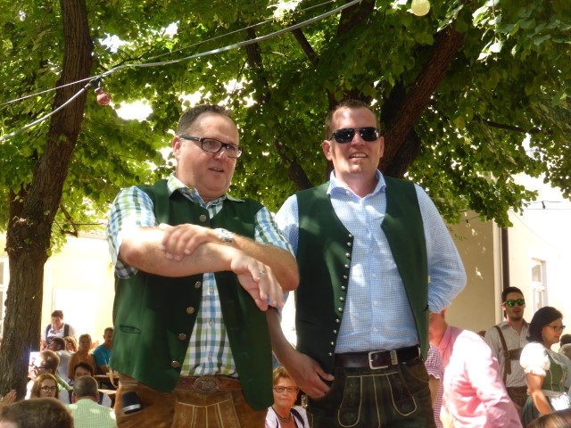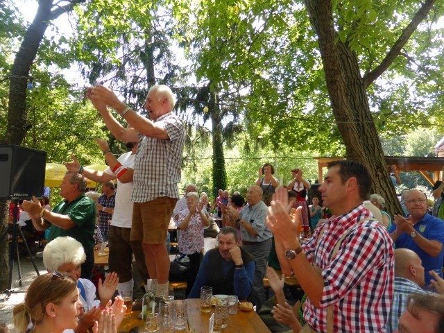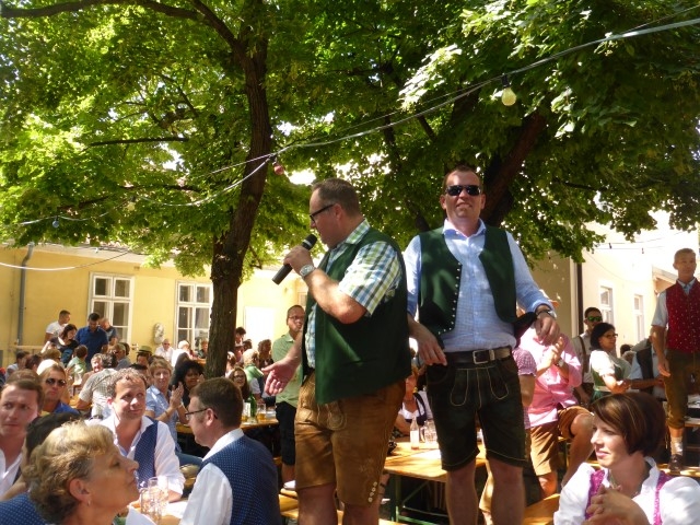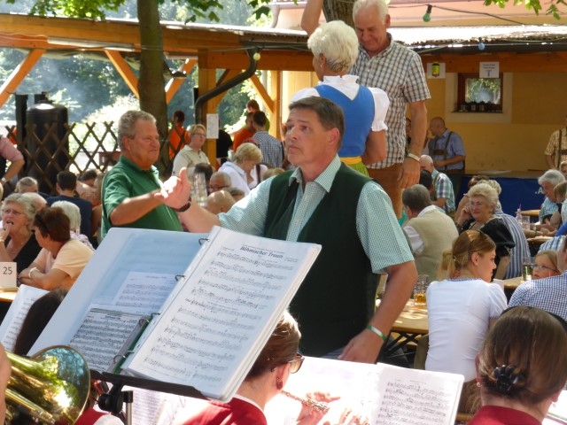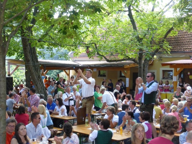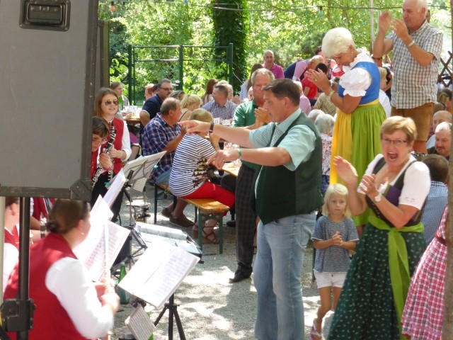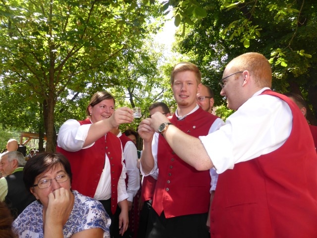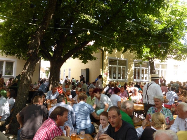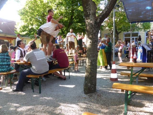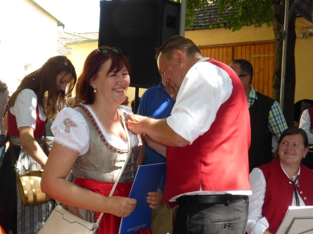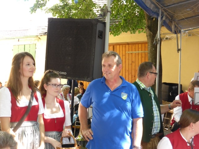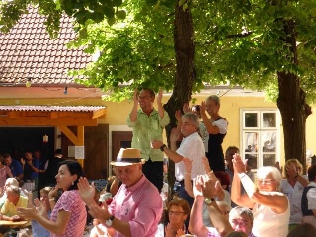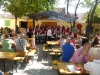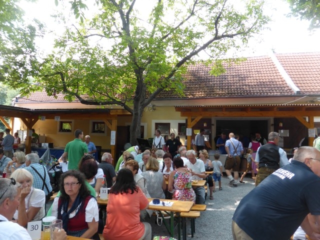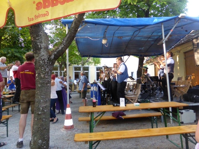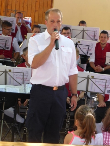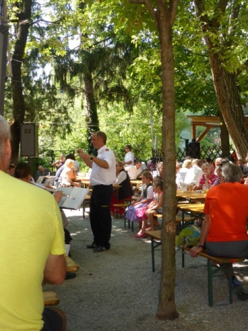 Um 10.30 Uhr begann das musikalische Programm. Trotz der noch etwas frühen Tageszeit herrschte sehr gute Stimmung im Pfarrgarten und die zahlreich erschienenen Gäste unterhielten sich prächtig zu unserer musikalischen Vorstellung. Zwischendurch wurde von unserem Kapellmeister, Landesobmann-Stellvertreter und Bezirksobmann Bernhard Fischer eine Auszeichnung verliehen. Martina Kitzweger bekam das Silberne Marketenderinnen-Abzeichen für ihre langjährige Tätigkeit im Moosbrunner Musikverein überreicht. Danach ging es natürlich mit unserer musikalischen Darbietung weiter. Das Essen und Trinken auf den Tischen der Gäste musste warten, denn zu den Stücken "Der Böhmische Traum", "Dem Land Tirol die Treue" und "Hei Gänschen Hei" ließ es sich keiner nehmen, aufzustehen und fleißig mitzuklatschen. Diese ausgelassene Stimmung herrschte natürliche auch bei der Vorführung der Stallberg Musikanten, die um zirka 15 Uhr in das Abendprogramm starteten. Diese verlängerten sogar ihre geplante Spielzeit um 1 1/2 Stunden und spielten bis zirka 20.30 Uhr ein ausgezeichnetes Programm. Mittlerweile waren die meisten unserer Musikanten schon nach Hause gefahren und nur noch ein kleiner Teil der Jugendblasmusik war vertreten. Doch ans Nach-Hause-Gehen wurde nicht gedacht. Denn jetzt war es an der Zeit, dass alle anwesenden MusikerInnen ihr Instrument zur Hand nehmen konnten, um gemeinsam den Abend mit gemütlichen Musikstücken ausklingen zu lassen. Fazit des Tages: Es war ein sehr schöner und lustiger Tag in Moosbrunn. Wir kommen wieder! |