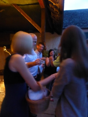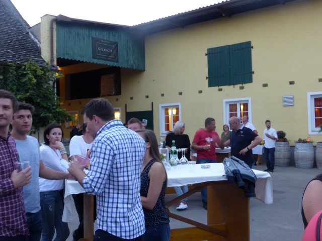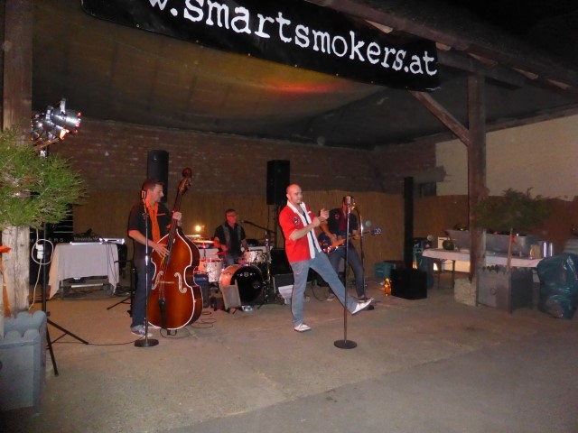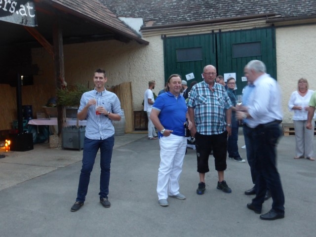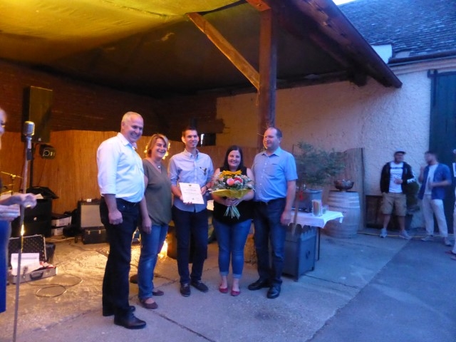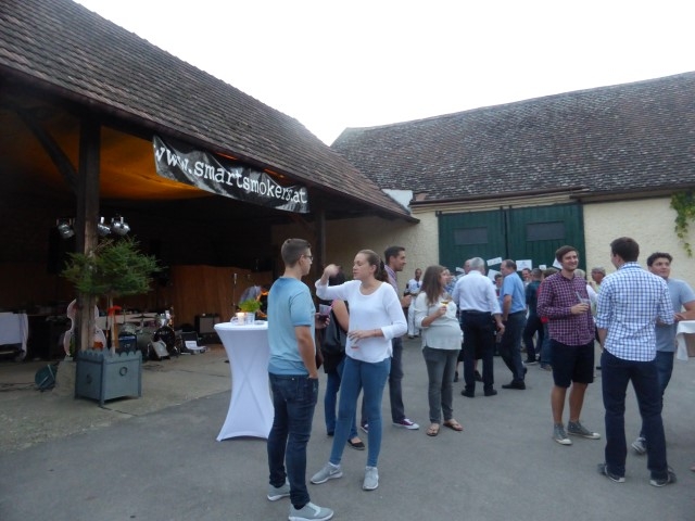 Die Feier startet um zirka 19 Uhr im Hof der Familie Glock in Göttlesbrunn. Auch der Wettergott hatte ein kleines Geschenk für Roman, sodass die Feier bei angenehmen Temperaturen im Freien stattfinden konnte. Für die Gäste waren sämtliche Leckereien vorbereitet. Bowle, Burger und Mehlspeisen wurden von allen mit Genuss verzehrt. Für die musikalische Unterhaltung war nach der Jugendblasmusik die Band "smartsmokers" zuständig, welche mit ihrem Rock n Roll-Sound ordentlich einheizte. Für eine Überraschung sorgte Bürgermeister Franz Glock als er dem Geburtstagskind das "Bronzene Ehrenzeichen für besondere Dienste in der Gemeinde" überreichte, über das sich Roman sichtlich freute. Im Hof herrschte den ganzen Abend lang ausgelassene Stimmung. Bis in die frühen Morgenstunden wurde mit dem ein oder anderen Stamperl auf Roman angestoßen. |