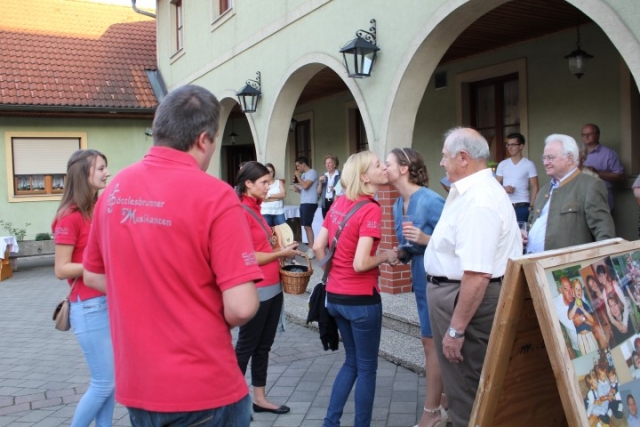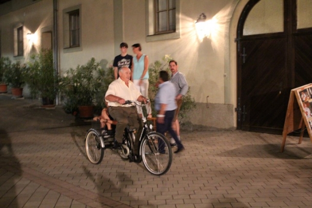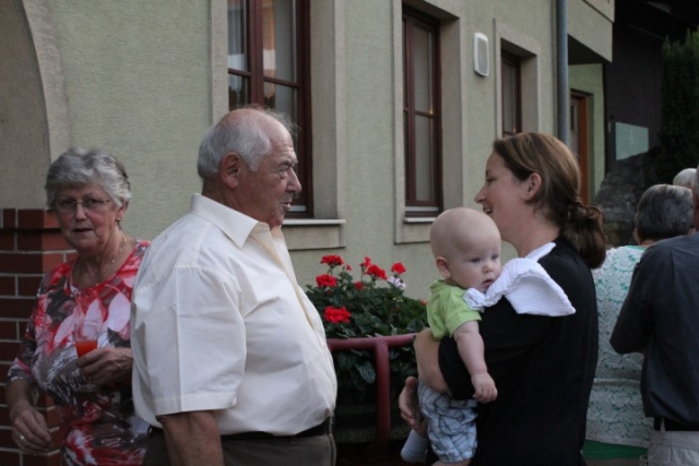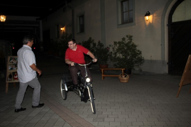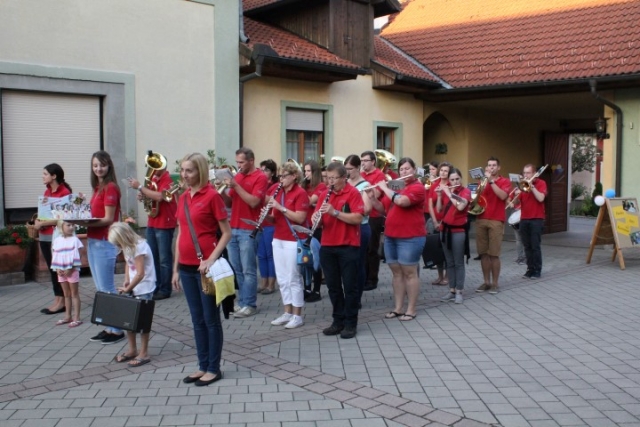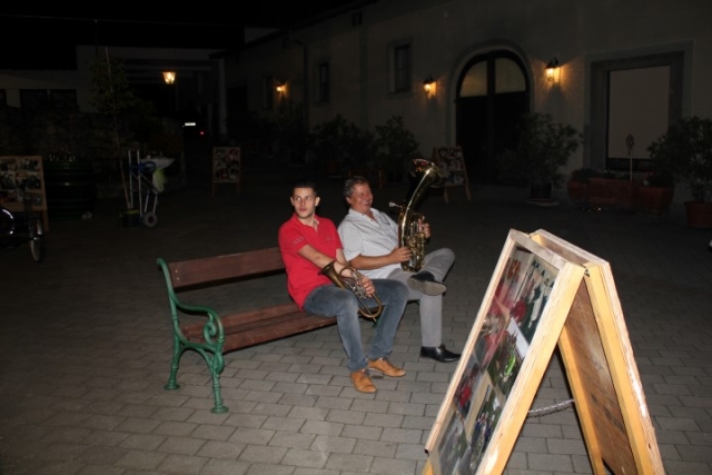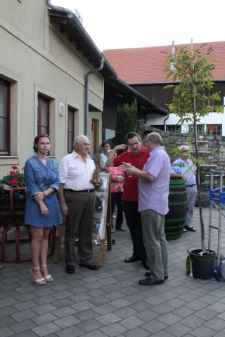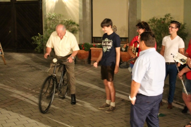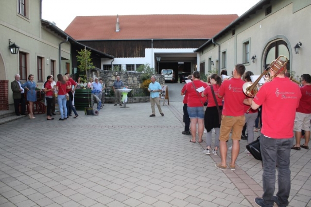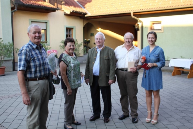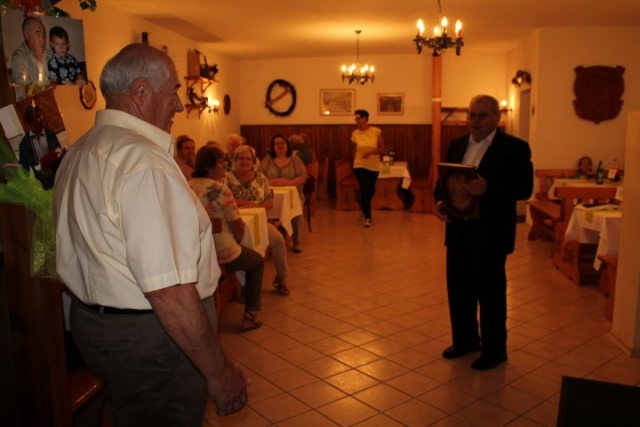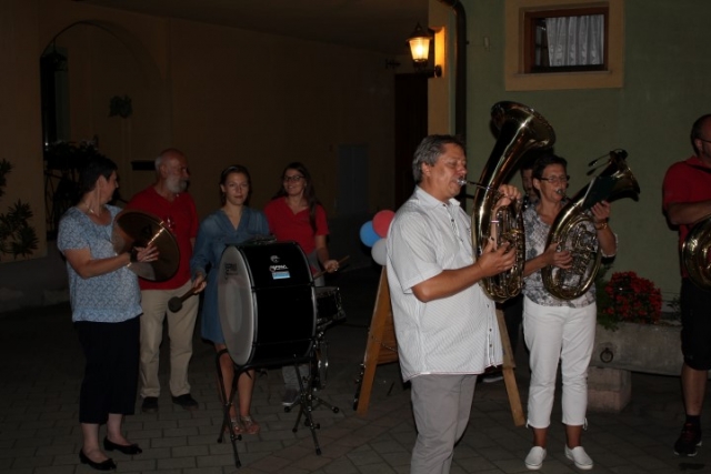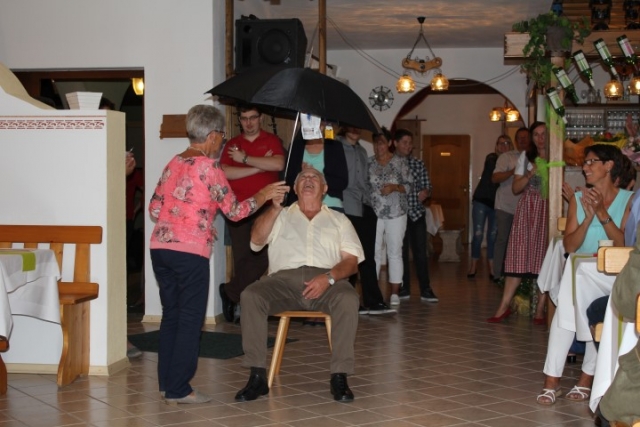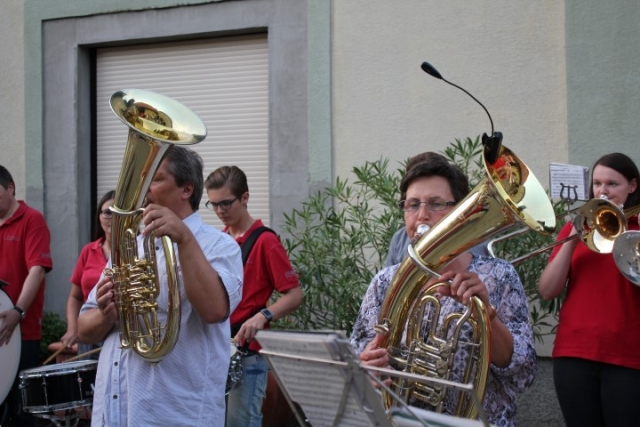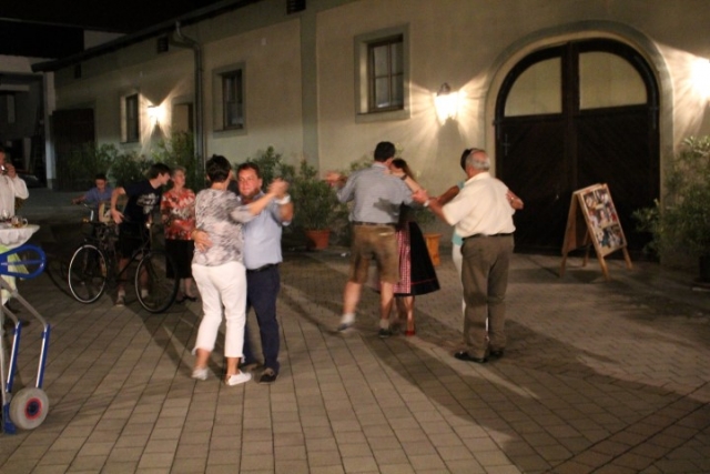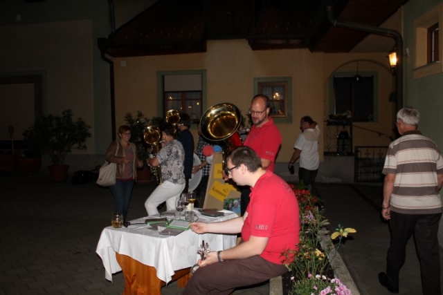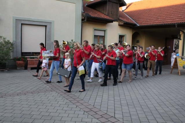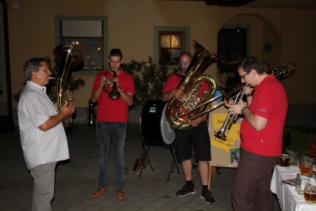 Um zirka 18.15 Uhr marschierte die Jugendblasmusik in klingendem Spiel in den Hof der Familie Paul ein und spielte dort den beiden Geburtstagskindern ein kleines Ständchen. Von Obmann Thomas Flamm und den Marketenderinnen wurden danach die Geschenke überreicht, welche für große Freude und ein leichtes Schmunzeln in den Gesichtern sorgten. Bekannterweise ist die Jugendblasmusik ein großer Fan von Herrn Pauls selbstgemachtem Nussschnaps. Damit auch für die nächsten Feierlichkeiten der Vorrat gesichert ist, wurde dem Jubilar ein Nussbaum geschenkt. Auch Feuerwehrkommandant Alexander Faust überbrachte Glückwünsche im Namen aller Feuerwehrkameraden - leider nur mit einer Flasche Wein, da er den Platz des eigentlichen Geschenks nicht ausfindig machen konnte. Die Überreichung wird aber natürlich bald nachgeholt. Nach den etlichen Gratulationen und Glückwünschen war es endlich soweit und der Hunger konnte mit köstlichen Stelzen gestillt werden. Dank des herrlichen Wetters konnte der Großteil der Feier im Freien stattfinden, wo Anton Paul unter anderem das Geschenk seiner Familie überreicht bekam. Wählen kann er zwischen einem Elektrorad, einem Dreirad oder einem Moped. Die Fahrzeuge musste er natürlich gleich auf deren Tauglichkeit testen, was für uns Zuseher ein Riesenspaß war. Wie so oft, wollten auch diesmal einige unserer Musikanten ihr Instrument nicht aus der Hand geben und boten ein lustiges, stimmungsvolles und teilweise chaotisches Musikprogramm. Dazu wurde von den anderen Gästen fleißig getanzt und geklatscht. Die Stimmung war ausgezeichnet und hielt bis in die frühen Morgenstunden an. Es war eine sehr tolle Feier, die uns allen noch lange in Erinnerung bleiben wird. |