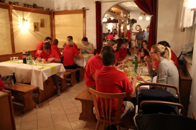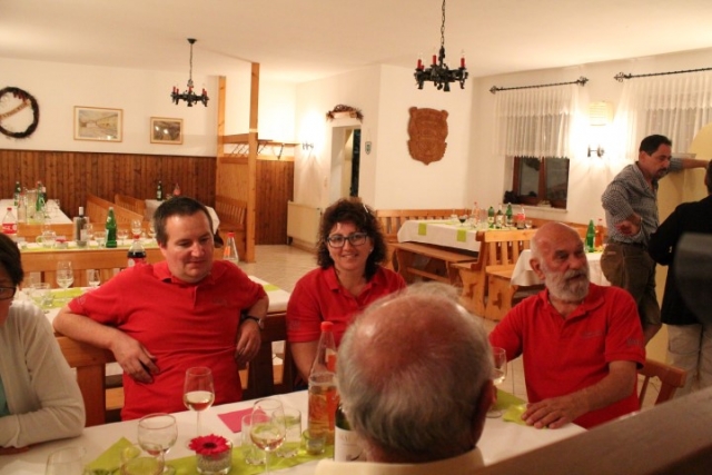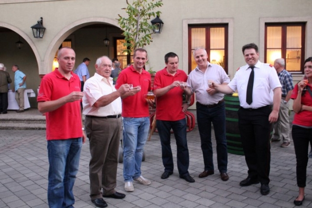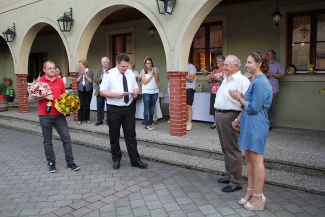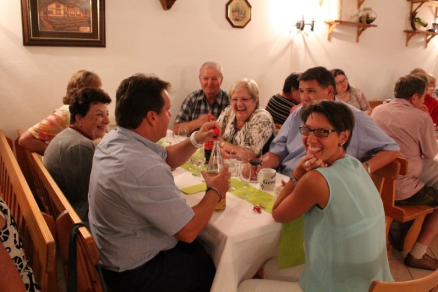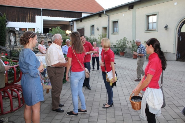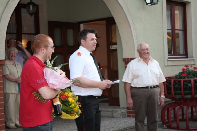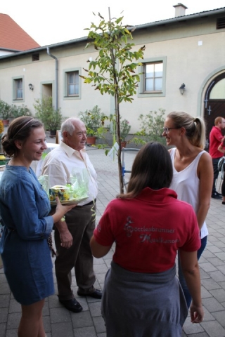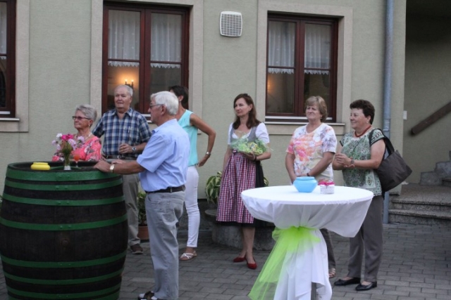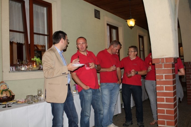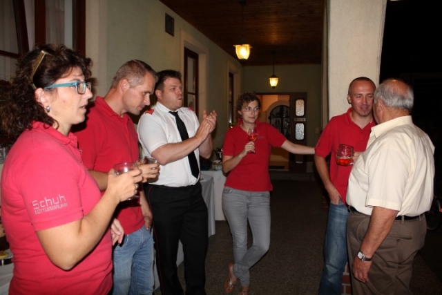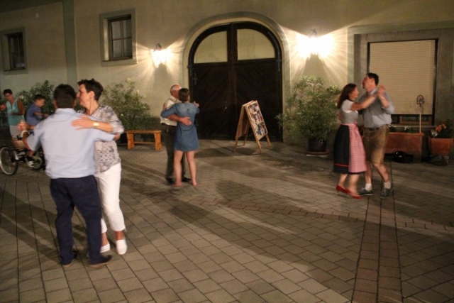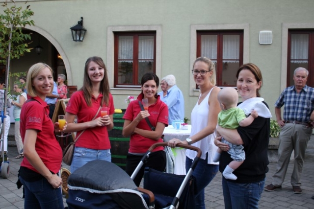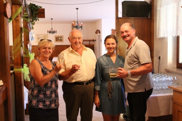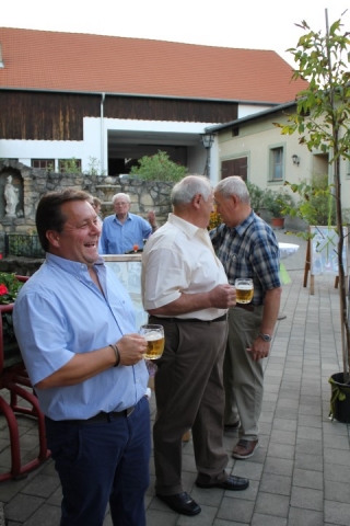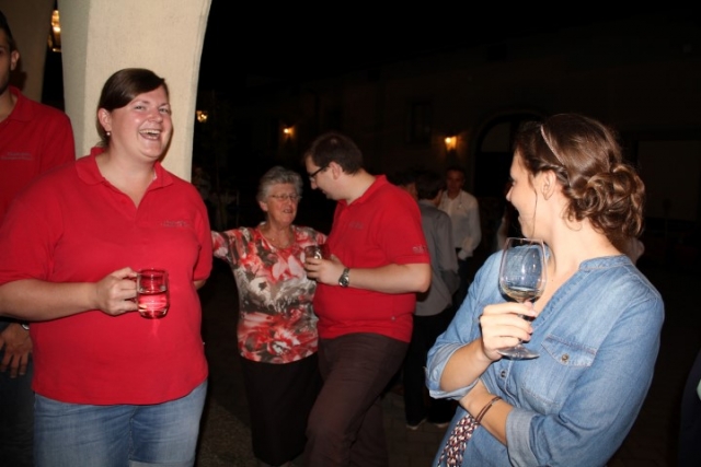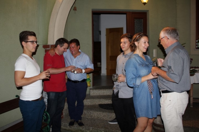 Um zirka 18.15 Uhr marschierte die Jugendblasmusik in klingendem Spiel in den Hof der Familie Paul ein und spielte dort den beiden Geburtstagskindern ein kleines Ständchen. Von Obmann Thomas Flamm und den Marketenderinnen wurden danach die Geschenke überreicht, welche für große Freude und ein leichtes Schmunzeln in den Gesichtern sorgten. Bekannterweise ist die Jugendblasmusik ein großer Fan von Herrn Pauls selbstgemachtem Nussschnaps. Damit auch für die nächsten Feierlichkeiten der Vorrat gesichert ist, wurde dem Jubilar ein Nussbaum geschenkt. Auch Feuerwehrkommandant Alexander Faust überbrachte Glückwünsche im Namen aller Feuerwehrkameraden - leider nur mit einer Flasche Wein, da er den Platz des eigentlichen Geschenks nicht ausfindig machen konnte. Die Überreichung wird aber natürlich bald nachgeholt. Nach den etlichen Gratulationen und Glückwünschen war es endlich soweit und der Hunger konnte mit köstlichen Stelzen gestillt werden. Dank des herrlichen Wetters konnte der Großteil der Feier im Freien stattfinden, wo Anton Paul unter anderem das Geschenk seiner Familie überreicht bekam. Wählen kann er zwischen einem Elektrorad, einem Dreirad oder einem Moped. Die Fahrzeuge musste er natürlich gleich auf deren Tauglichkeit testen, was für uns Zuseher ein Riesenspaß war. Wie so oft, wollten auch diesmal einige unserer Musikanten ihr Instrument nicht aus der Hand geben und boten ein lustiges, stimmungsvolles und teilweise chaotisches Musikprogramm. Dazu wurde von den anderen Gästen fleißig getanzt und geklatscht. Die Stimmung war ausgezeichnet und hielt bis in die frühen Morgenstunden an. Es war eine sehr tolle Feier, die uns allen noch lange in Erinnerung bleiben wird. |