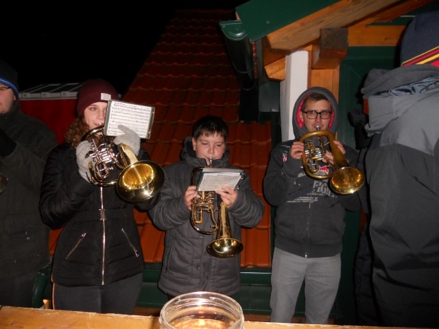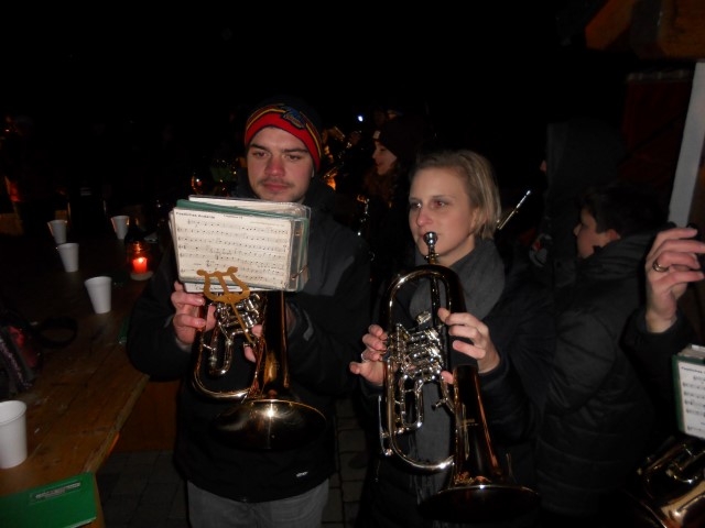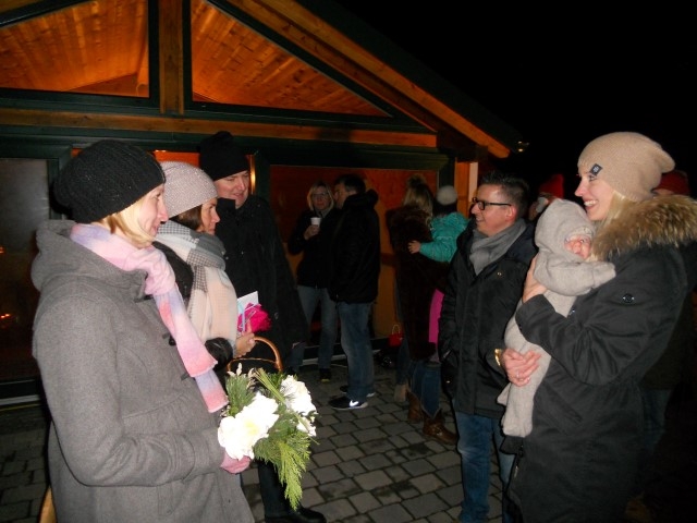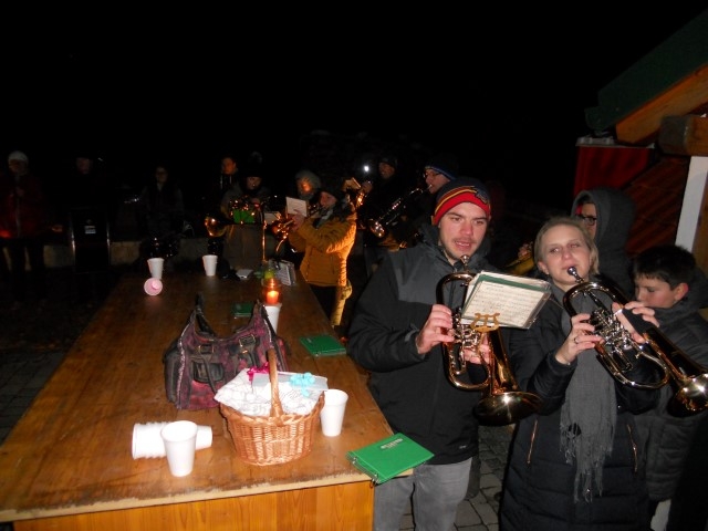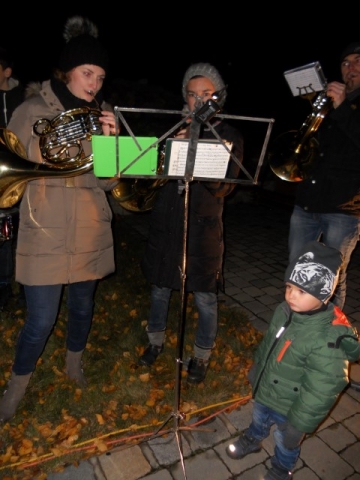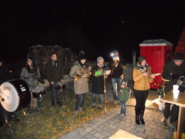 Am 27. November waren unser Trompeter Stefan Schuh und unsere Flötistin Theresa Schuh an der Reihe. Die Jugendblasmusik traf sich um 17 Uhr in deren Keller im Zweigeltweg, um ihnen und ihrem kleinen Laurent musikalische Glückwünsche zu überbringen. Trotz der eisigen Temperaturen wurden einige Märsche und Polkas zum Besten gegeben. Danach konnten wir uns mit heißem Punsch oder Glühwein und frischen Ofenkartoffeln aufwärmen. Wir wünschen unseren Musikkollegen Theresa und Stefan nochmals alles Gute und weiterhin viel Freude mit dem kleinen Laurent. |