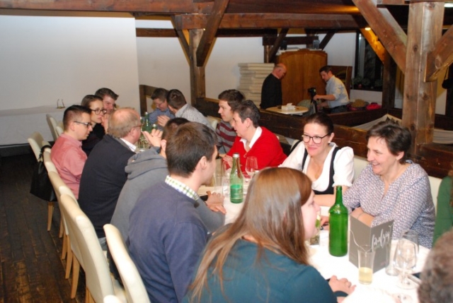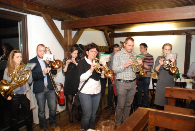 Um 18 Uhr war Treffpunkt beim JungWirt in Göttlesbrunn, wo sich bereits einige geladene Gäste eingefunden hatten. Nach dem Sektempfang und den Begrüßungsworten von Evi wurde ihr von Obmann Thomas Flamm das Geschenk überreicht und von den Musikern ein paar Stücke gespielt. Für das leibliche Wohl und reichlich Spaß wurde den ganzen Abend über gesorgt, sodass es zu einer sehr gemütlichen Feier wurde. Auch hier möchten wir unserer langjährigen Musikkollegin alles Gute zu ihrem Geburtstag wünschen und hoffen, noch einige Zeit mit ihr verbringen zu dürfen. |