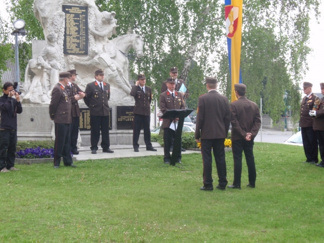 Dabei marschierte die Jugendblasmusik gemeinsam mit der Feuerwehr vom Feuerwehrhaus zur Kirche wo anschließend unser Herr Pfarrer Pater Paul GNAT die heilige Messe feierte. Nach der Messe wurden durch den Kommandanten der Feuerwehr Göttlesbrunn, OBI Hans NETZL die Ehrungen und Beförderungen vorgenommen.