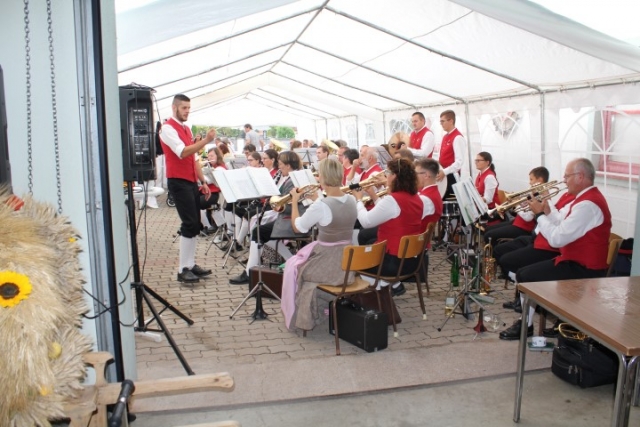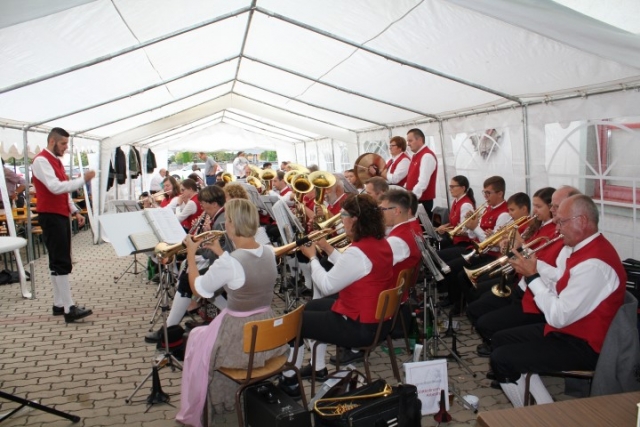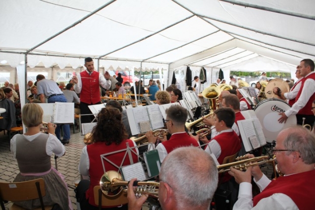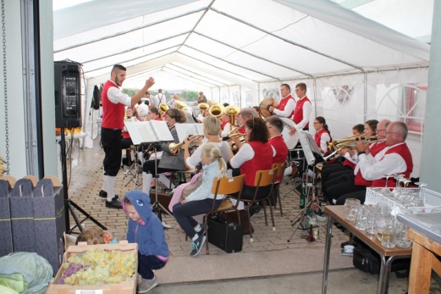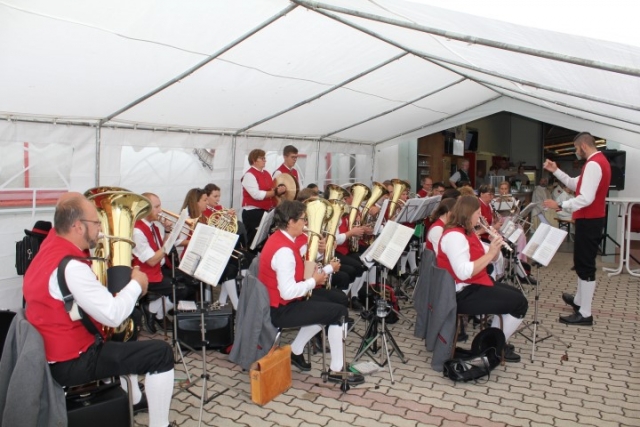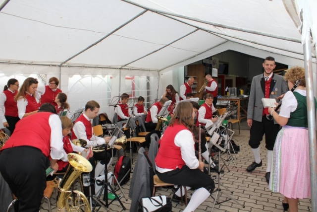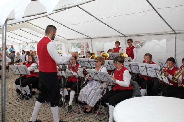 Aufgrund der wechselhaften Wetterlage wurde die Feierlichkeit ins Feuerwehrhaus verlagert. Dort fand um 10.00 Uhr eine Feldmesse statt, die Dechant Pater Paul Gnat feierlich gestaltete. Anschließend waren die Tänzer und Tänzerinnen der KUGRUGÖ an der Reihe, ihre einstudierten Tänze vorzuführen. Danach waren die Klänge der Jugendblasmusik gefragt. Bis zirka 13.30 Uhr sorgten wir mit den gespielten Stücken für ausgelassene Stimmung. Eine kleine Überraschung hatten wir diesmal auch parat. Pater Paul feierte im Mai diesen Jahres seinen 50. Geburtstag. Damals überreichten wir ihm ein Notenblatt einer für ihn komponierten Polka. Beim Erntedankfest wurde die „Jubiläumspolka“, komponiert von Christian Bohrn, nun erstmalig aufgeführt. Nach unserer musikalischen Darbietung fand zum Abschluss eine Tombola statt, bei der es wieder Gemüse, Gutscheine oder Weine der Region zu gewinnen gab. Danach ließ man den Tag gemütlich ausklingen. |