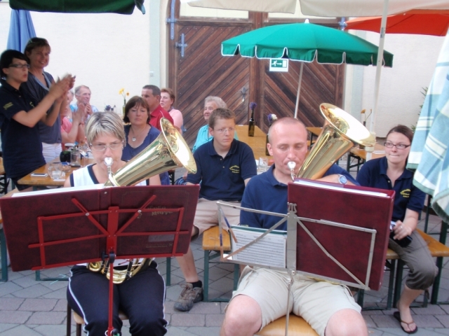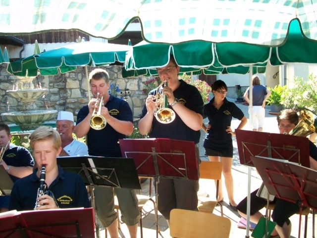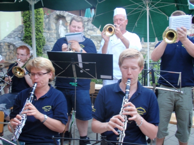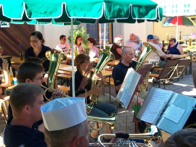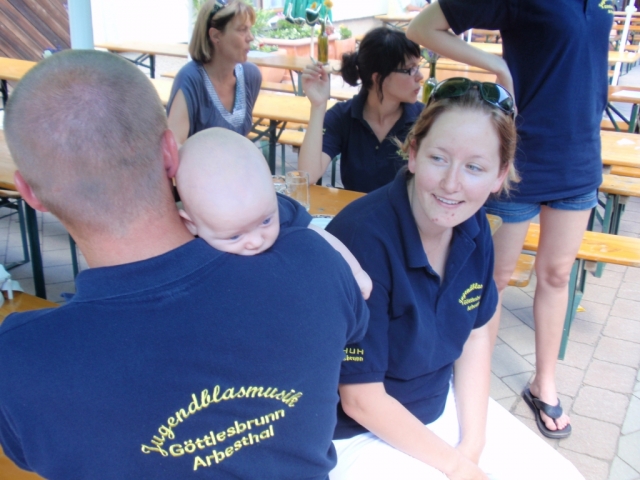 Da nach Beendigung des Frühschoppen immer noch zahlreiche Gäste anwesend waren, entschloss sich die Jugenblasmusik Göttlesbrunn-Arbesthal mit einer kleinen Besetzung noch weiter zu spielen. Aufgrund der guten Stimmung sorgte man noch mit zahlreichen Stücken (Böhmischer Traum, ABBA-Gold, Dem Land die Tirol die Treue, usw.) bis 19.30 Uhr für die musikalische Unterhaltung. Danach ließen die zahlreichen Helfer und noch anwesenden Gäste den Musikerkirtag gemütlich bei einem Glas Wein ausklingen. Die Jugendblasmusik konnte sich trotz der extremen Hitze über ein sehr gut besuchtes Fest freuen.