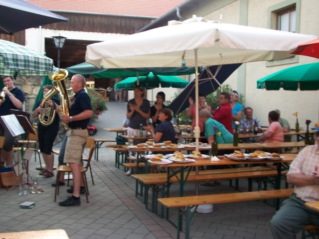 Die Jugendblasmusik Göttlesbrunn-Arbesthal veranstaltete den Musikerkirtag im Hof der Familie Paul.