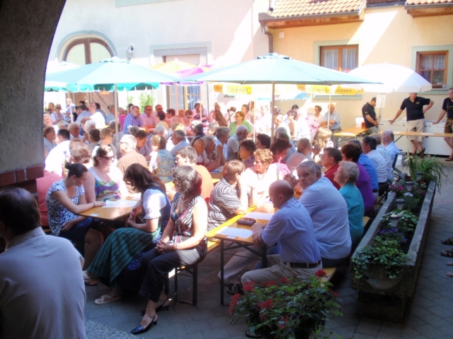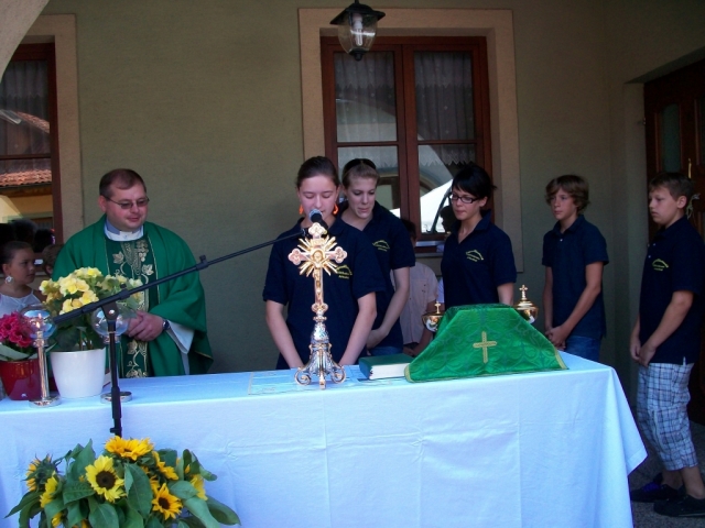 Dieser wurde durch unseren Herrn Pfarrer Paul Gnat um 10.00 Uhr mit einer Feldmesse feierlich eröffnet. Im Anschluss daran sorgte der Musikverein Moosbrunn bis 15.00 Uhr für die musikalische Unterhaltung. Dazwischen um 13.00 Uhr fand die Verlosung unseres Schätzspieles statt. Dabei ging es zu erraten, wie groß die Jugendblasmusik, auf halbe Zentimeter genau, ist. Der erste Platz ging an die Familie Huber aus Tadten, welche sich über einen Weinkorb freuen konnte.